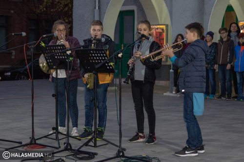 A Bethlen Gábor téren a Szent József Katolikus Általános Iskola és a Felsővárosi Általános Iskola pedagógusai és kisdiákjai zenéltek és énekeltek az összegyűlt sokaságnak.