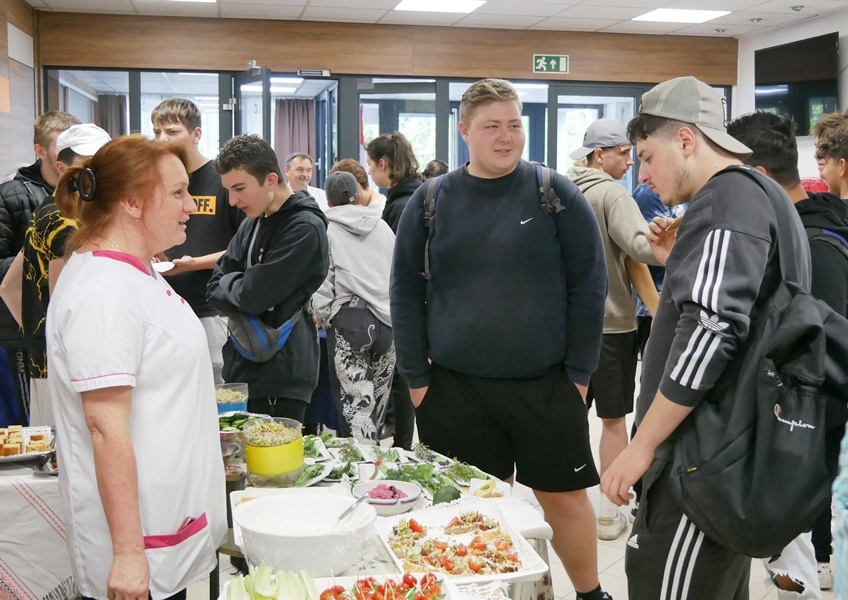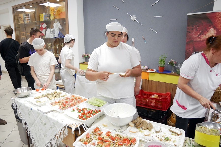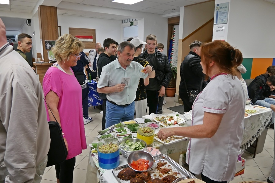 Ízletes szendvicsek, egészséges ivólevek, szűrővizsgálat és szakmai bemutatók várták a diákokat a Kiskunhalasi Szakképzési Centrum Vári Szabó István Szakképző Iskolájának aulájában. Dancs Eszter és szervezőtársai napok óta készültek erre az eseményre. A céljuk az volt, hogy a Zöldségfaló Nap során szó essen az egészséges étkezés, a sport, a mozgás fontosságáról.