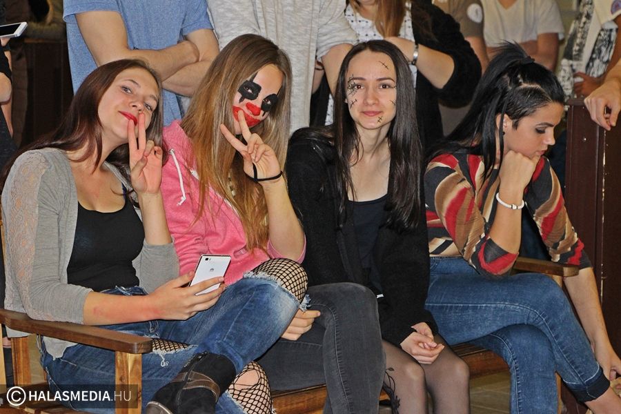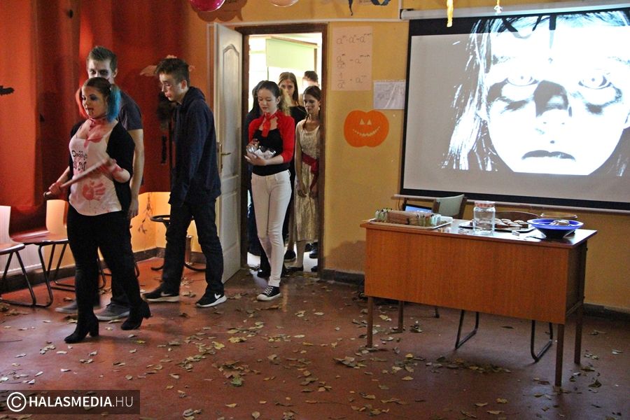 - Nagyon vártuk már ezt a napot. Hetek óta azt tervezgettük, milyen dekoráció kerüljön majd ki az osztálytermünkbe, plusz azt is át kellett beszélnünk, ki minek öltözik ma, nehogy legyen két egyforma jelmez. Próbáltunk minél rémisztőbb karakterek bőrébe bújni, hogy mi legyünk a legfélelmetesebb osztály - nyilatkozta weblapunknak az egyik jelmezes diák.