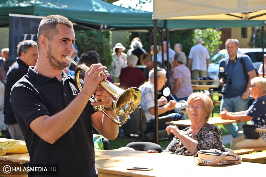 Az ízletes ebéd elfogyasztása közben sem volt csend a zsinagóga udvarán. A Halas Jazz Band Jó ebédhez szól a Jazz című műsorában lassabb és pörgősebb dallamok is helyet kaptak.
