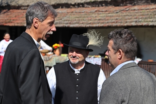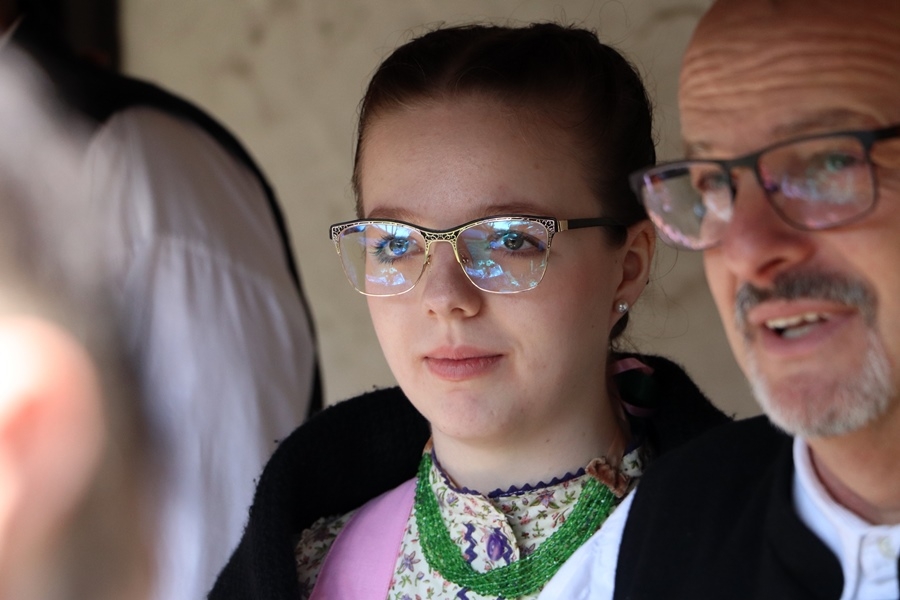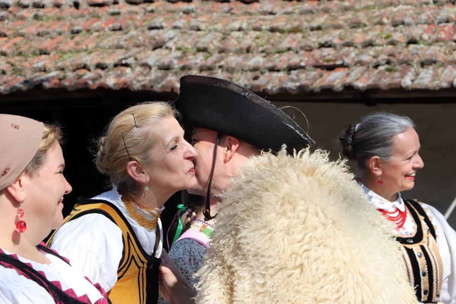 A táncegyüttes hölgy tagjai megadva a módját díszes népviseletben fogadták a legényeket az országos műemléki védettség alatt álló, az Eskü tér 1. szám alatt található tájház udvarán. A legények nem üres kézzel érkeztek, az illatos kölnivizek mellett szódásszifon és vödör is volt náluk.