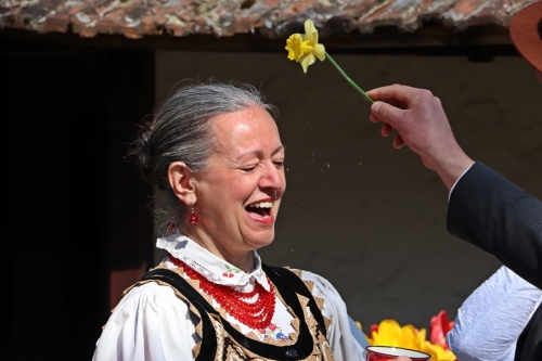 Hagyományőrző húsvéti locsolkodást szervezett a Halas Táncegyüttes a kiskunhalasi Tájházban. A népviseletbe öltözött menyecskék délelőtt tíz órára várták a legényeket. A vers sem maradhatott el és persze nem csak a kölnivíz fröccsent a nagy sikongatások közepette.