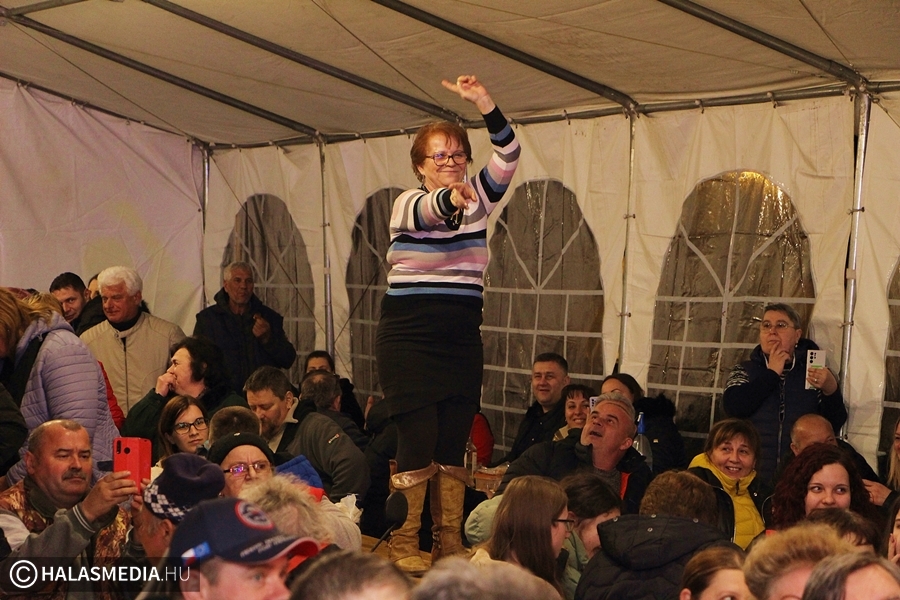 Önfeledt mulatozással zárult a szombat este Kunfehértón. A falu hagyományőrző disznótoros rendezvényén, az ízletes vacsora után a Bácskai Mulatós zenekar húzta a talpalávalót. A jó dallamokat hallva sokan táncra perdültek.