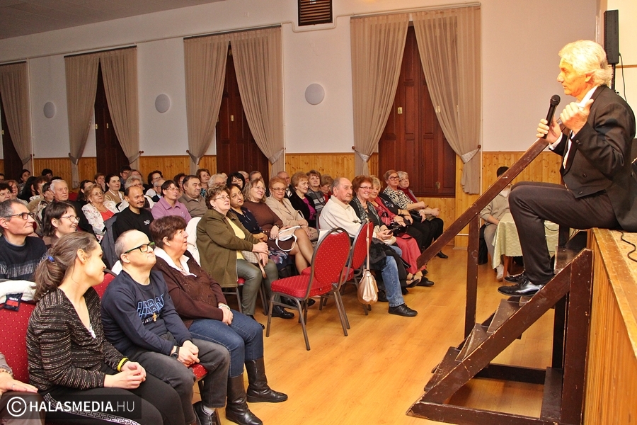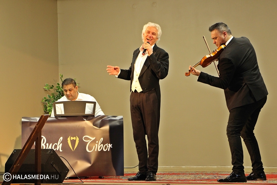 Buch Tibor rendszeres szereplője a különféle kiskunhalasi, kulturális rendezvényeknek. Ezúttal élőzenei kísérettel, barátai közreműködésével hozott jól ismert slágereket a Tiszti Klub nagytermébe.