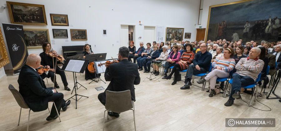 Különleges zenei csemegében részesült az a közel százfős közönség december 7-én este a Thorma János Múzeum dísztermében, amely szem és fültanúja lehetett a Giovani Artisti (címképen) vonósnégyes adventi koncertjének. A szegedi művészekből álló kamaraegyüttes a ráadásokkal bővítve, több mint egy órán át nyújtott rendkívüli, az ünnepekhez illeszkedő, főleg klasszikusokból álló repertoárjukkal magával ragadó élményt a publikumnak.