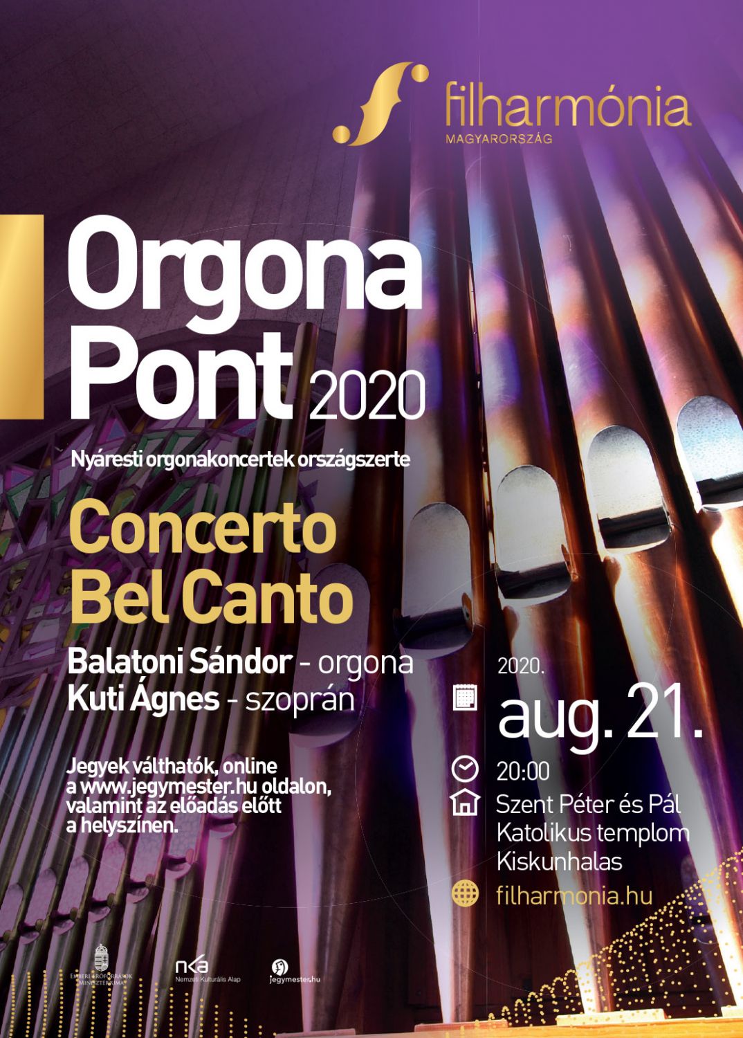 Augusztusban újra az orgonáké a főszerep! A Filharmónia Magyarország színes programjai által betekintést nyerhetünk ennek a páratlan hangszernek a birodalmába, megismerhetjük különlegességeit, amelyeket sokan nem is sejtenek. Az OrgonaPont hangversenyén Balatoni Sándor orgonaművész és Kuti Ágnes szoprán énekesnő által az orgona-énekhang csodálatos együttesét hallhatja a közönség augusztus 21-én Kiskunhalason.