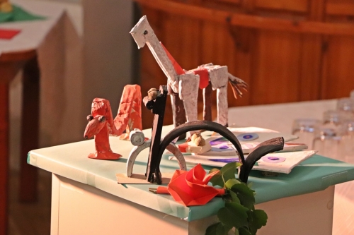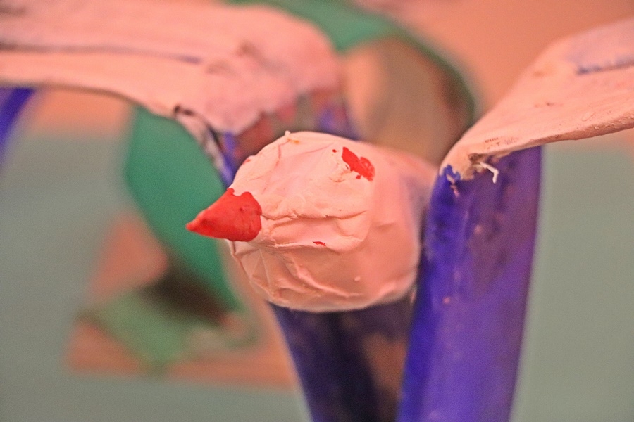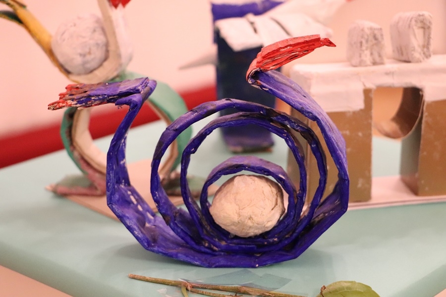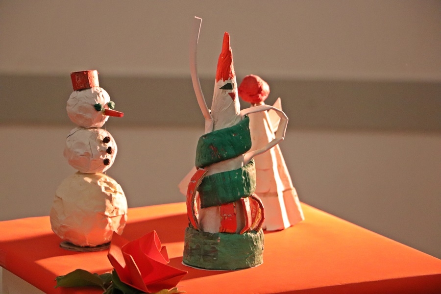 Baráth József is köszöntötte az egykori tanítványokat, barátokat, mint mondta, az idei kiállítás anyagát egy papírcsík inspirálta. Kézbe véve tekeredett, formálódott az anyag, hol egy macska, hol egy napozó hölgy alakját lehetett benne felfedezni. „Olyan mintha…”- éppen is ezért kapta ezt a címet a kiállítás.