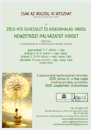 A Zöld-híd Halasi Környezetvédők Egyesülete és Kiskunhalas Város önkormányzata idén is meghirdeti nemzetközi pályázatát rajz, mese és fotó kategóriában. A részletekről Mongyi Marianna egyesületi elnök nyilatkozott weboldalunknak.