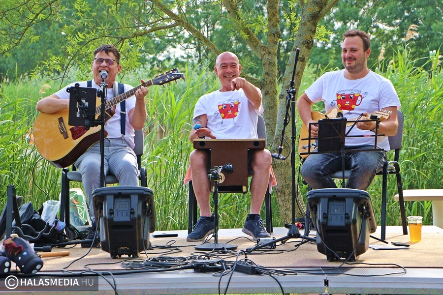 A Pöttyös Bögre zenekar mai koncertje különleges volt olyan szempontból, hogy az állandó tagok mellett ezúttal egy vendégzenész, Nánai Ádám foglalt helyet a színpadon. A repertoárban most is csupa ismert gyermekdal kapott helyet.