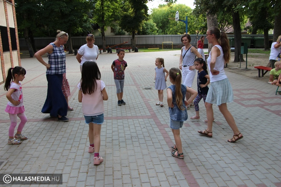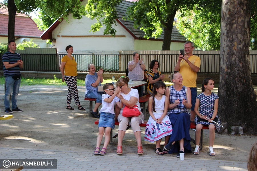 Derűs időben fogadták a látogatókat. A színpadot ezúttal a Kiskunhalasi Alapfokú Művészeti Iskola udvarán rendezték be. Elé padokat helyeztek el, oldalt hűsítő italokat, ropit és édességet kínáltak a vendégeknek a nyári melegben.