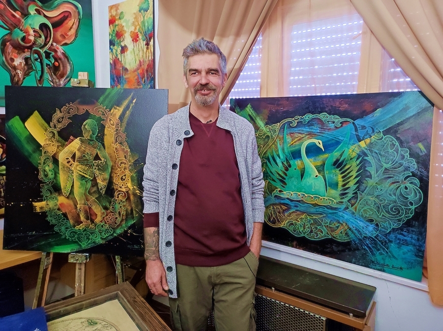 Sáli Levente mindig valami új, különleges dolgon töri a fejét. Ezúttal a halasi csipkék ihlették meg, így festményein is ezek a motívumok láthatók, továbbgondolva. A festőművész azt is elárulta, hogy hamarosan ismét a szabadban fog alkotni, így az utcákat járva, bárki találkozhat majd vele festegetés közben.