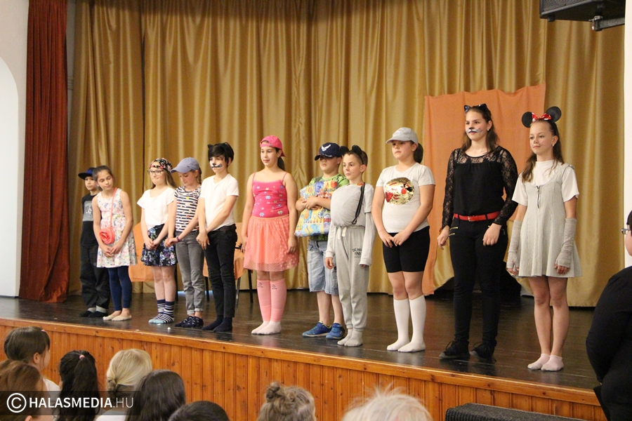 - A 19. Diáktárlatra azért ezt a darabot választottuk, mert az idei téma a szürrealizmus. Mi lehetne szürreálisabb egy iskolai színjátszó csoport számára, mint hogy Nincs többé iskola. Már a tanév elején megkezdtük a történettel való ismerkedést. Az idén először alsó és felső tagozat együttesen készült az előadásra. Igyekeztem a zenei betétekkel és a koreográfiával 21. századivá varázsolni a darabot. Különösen nagy hangsúlyt fektettem a szöveg humorára. A díszletnél egyszerűségre törekedtem, teret hagyva a gyermeki fantáziának is – fogalmazott Granyák Linda szakkörvezető, rendező.