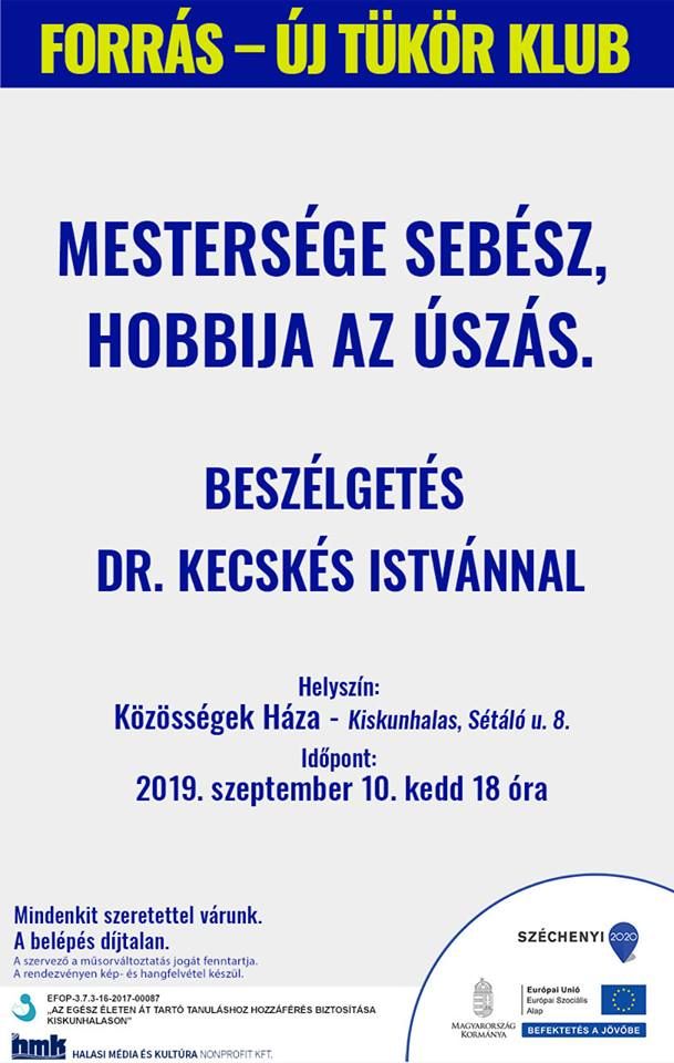 Az ismert sebész-orvos, dr. Kecskés István lesz a vendége a legközelebbi, azaz a mai Forrás – Új Tükör Klubnak a Közösségek Házában.