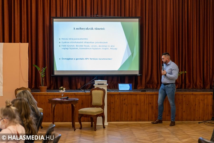 Dr. Mare Norbert Adrián szülész-nőgyógyász szakorvosjelölt negyedik éve dolgozik a kiskunhalasi kórház szülészeti osztályán. A méhnyakrák megelőzése (HPV-infekció, nőgyógyászati rákszűrés) címmel tartott előadást a Közösségek Házában.