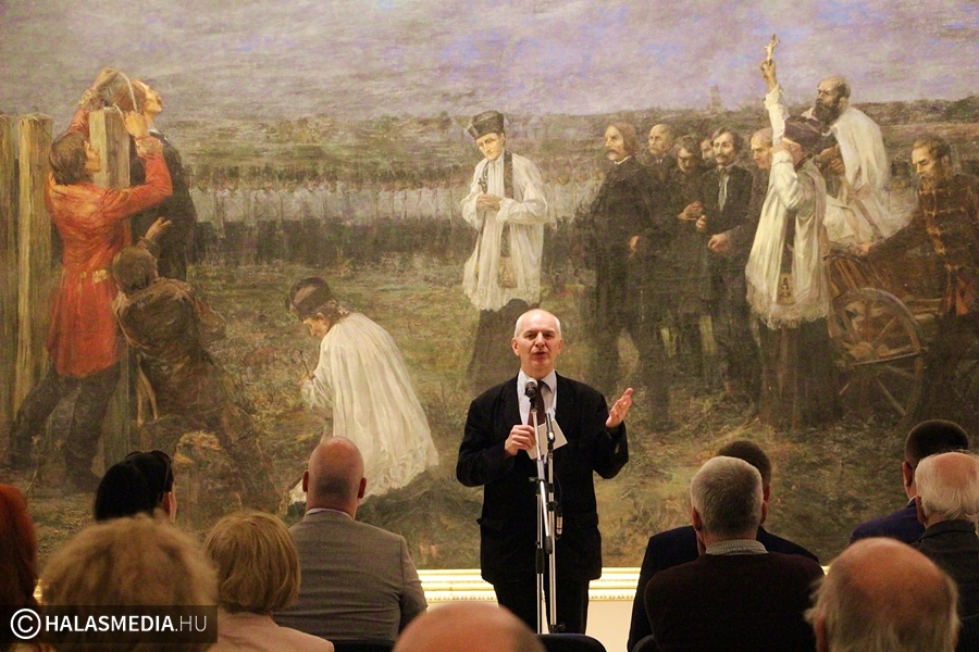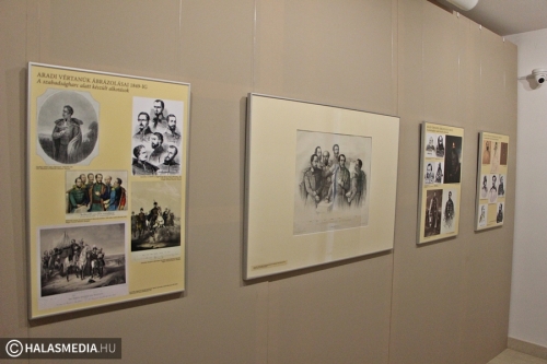Az ünnepségen Kovács Andrea és Korponai Zsolt, a Kiskunhalasi Alapfokú Művészeti Iskola tanárai gondoskodtak a zenéről. A tárlatot Hermann Róbert történész nyitotta meg. Többek között elmondta, hogy hálás ezért a kiállításért és ez a tárlat törleszt az eddigi hiányosságokból, de még így is van mit tenni a vértanúk emlékének ápolásában. Thorma János Aradi vértanúk című festményéről is szólt a történész, hangsúlyozta, hogy ahányszor látja, ez a festmény mindig megdöbbenti és ez a kép mindegyik korban hatásos. Hermann Róbert a tárlat több különlegességére is rávilágított. A nézőknek érdemes lesz mindent elolvasni és alaposan átnézni a tablókat.