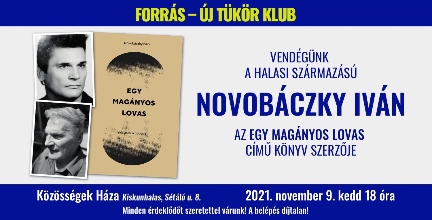 Egy magányos lovas."Lélekben lovas, lótenyésztő és amatőr történész voltam, a vezérigazgatás csak szerep volt" - írja visszaemlékezéseiben Novobáczky Iván. A kötet szerzője november 9-én kedden 18 órakor lesz a Forrás Klub vendége a Sétáló utcai Közösségek Házában. A szerző nagyapja a két világháború között Kiskunhalas polgármestere, apja a visszafoglalt Újvidék tisztiorvosa volt és a saját élete sem mindennapi, így lesz miről mesélni a klubban.