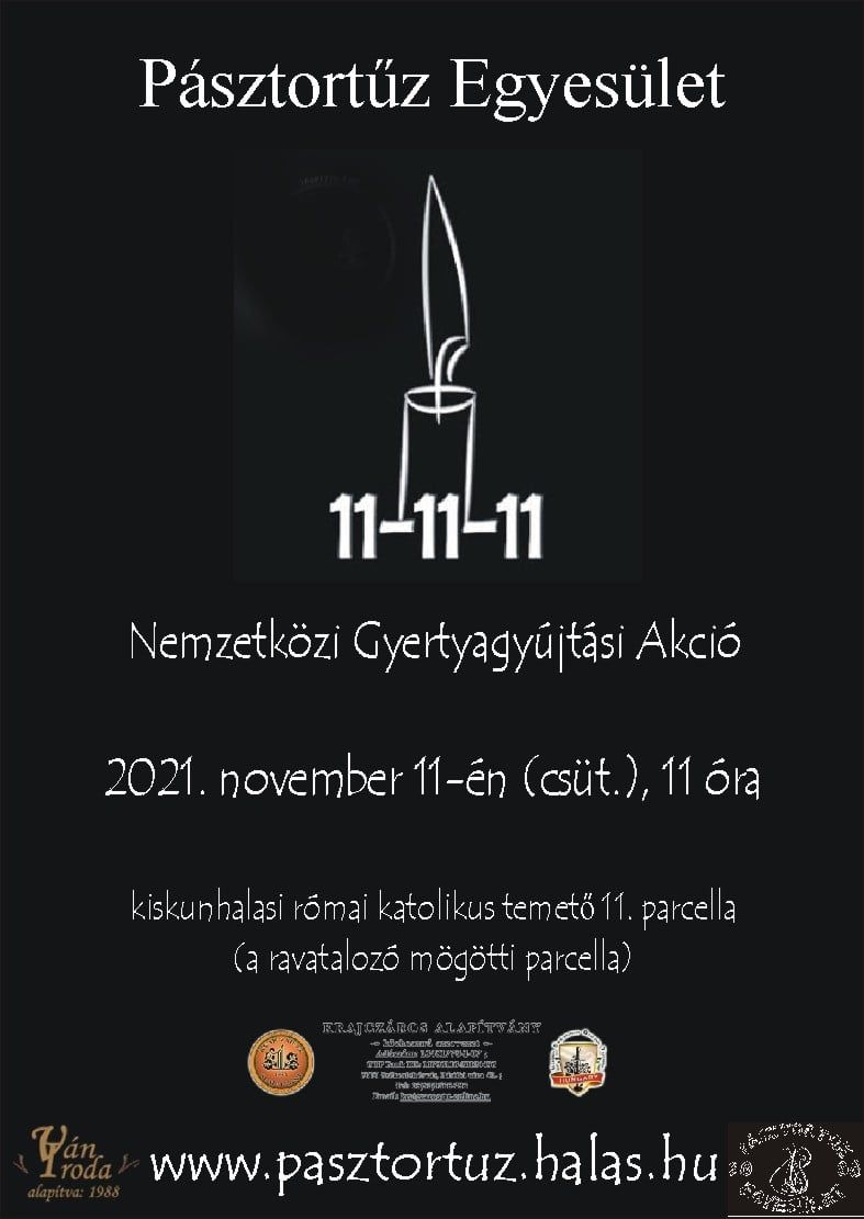 11. hó, 11-e. 11 óra 11-es parcella. Jövő csütörtökön közös gyertyagyújtással emlékezünk az első világháborús katonákra. Halason a katolikus temetőbe a ravatalozó mögötti világháborús parcellához várja a nemzetközi gyertyagyújtási akcióhoz csatlakozókat a Pásztortűz Egyesület.