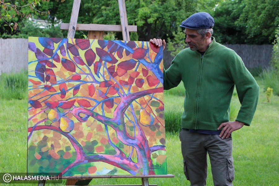 - Már minden szegletében festettem. Negyven évig panelben éltem. Sokáig tartott elhinni, hogy ez az enyém. Akkor jövök ki, amikor szeretnék. Nyáron festő barátokat is hívok. Akkor hatan-heten leszünk alkotótáborban. Szeretnék majd a barátaimmal közös kiállítást is, akik Győrtől Nyíregyházáig élnek szerte az országban. A sztorijaimból ismerik Halas történetét, már kíváncsiak a városra. Én mindent Halashoz viszonyítok. Ezen viccelődni is szoktak.
