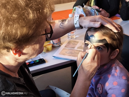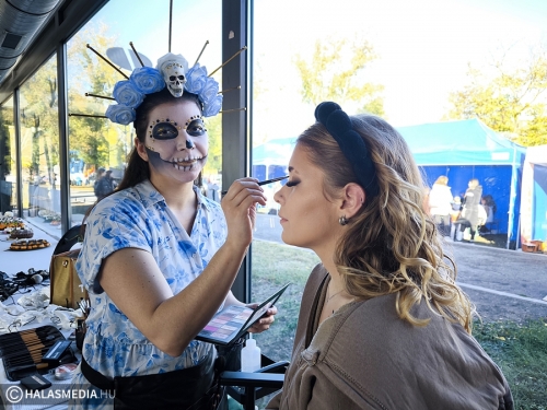 Extrém sminkekből sem volt hiány. Kókai-Varga Vincenza sminkes, fotós maga is egészen egyedi megjelenéssel érkezett a programra, majd a helyszínen többeknek készített hasonlóan különleges arcdekorálást. Mint mondta, tapasztalata szerint városunkban is egyre többen ünneplik a halloweent, és kérnek ehhez passzoló alkalmi sminkeket.