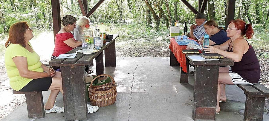 A rendezvény során az irodalmi kör tagjai saját verseket mondtak egymásnak az árnyas parkerdőben.