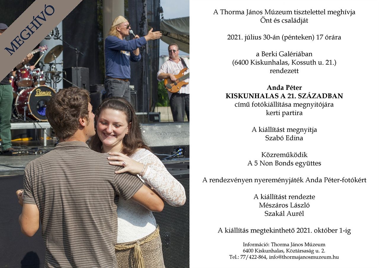 Kerti partival egybekötött kiállításmegnyitó színesíti a forró nyarat. Július 30-án, pénteken 17 órakor nyílik meg a Thorma János Múzeum szervezésében a Kossuth utca 21. szám alatti Berki Galériában Anda Péter fotókiállítása, mely a Kiskunhalas a 21. században címet viseli.