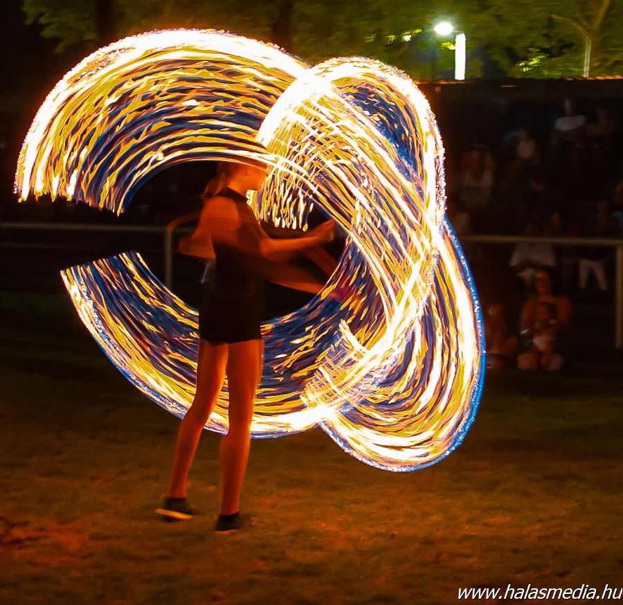 A lovas énekesek után ismét a Halas Concert Band játszott, majd a már sötétre váltott időszakban szó szerint az est fénypontja következett. A Szabadkai Crystal Dance Studio táncosai fényjátékkal, tüzes buzogányokkal mozogva mutattak be különböző koreográfiákat. A partnervárosunk fellépői a koromsötétben rendkívüli látványt adtak a műsor záró szakaszának. A színes napért köszönetét a közönség szűnni nem akaró tapssal honorálta az előadóknak és a szervezőknek.