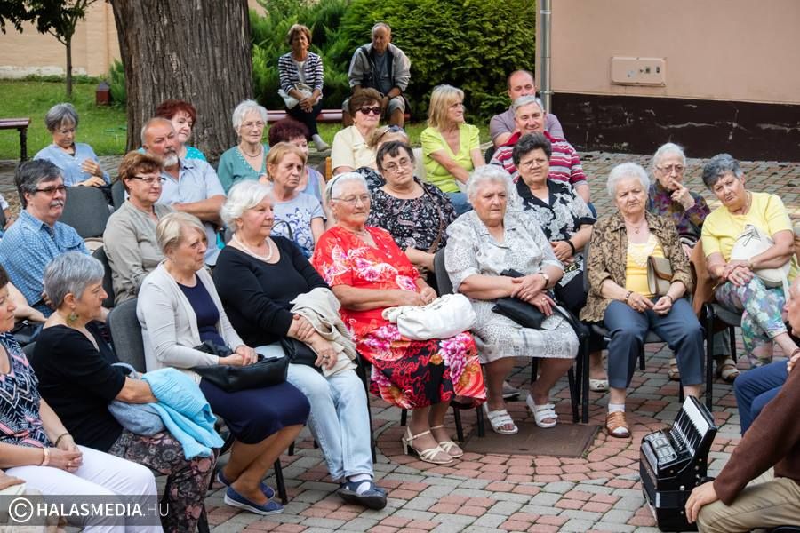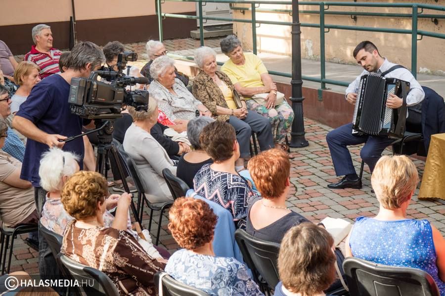 Zsolt hangszere 12 és fél kilogramm, de van ennél könnyebb és nehezebb is a harmonikák között. A halasi zenész mostanában ötleteket gyűjt. A Közösségek Háza június 26-i beszélgetős-muzsikálós estjére is hozott ebből. Többek között előadott egy 1931-es dalt Csak egy kislány van a világon címmel. Egy meglepetés produkció is elhangzott. Zsolt párjával, Básits Branka énekművésszel adta elő Edith Piaf Padam, Padam című slágerét.