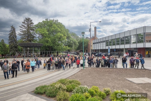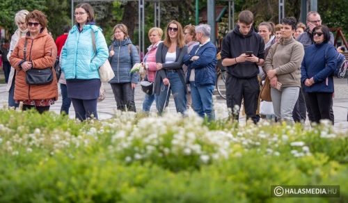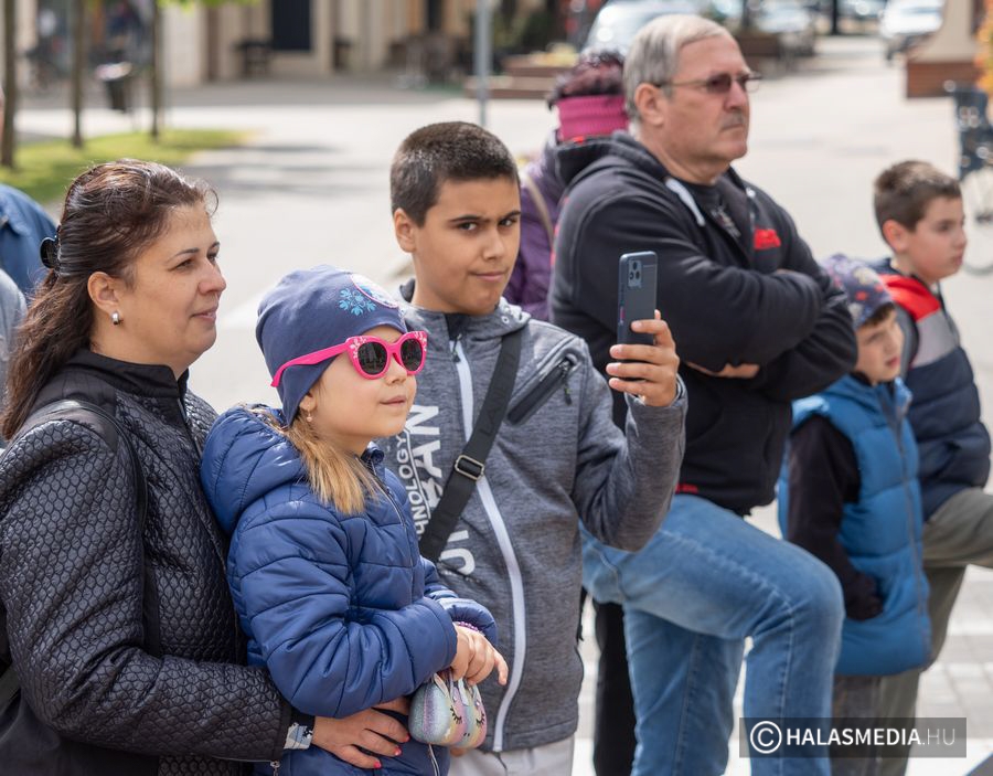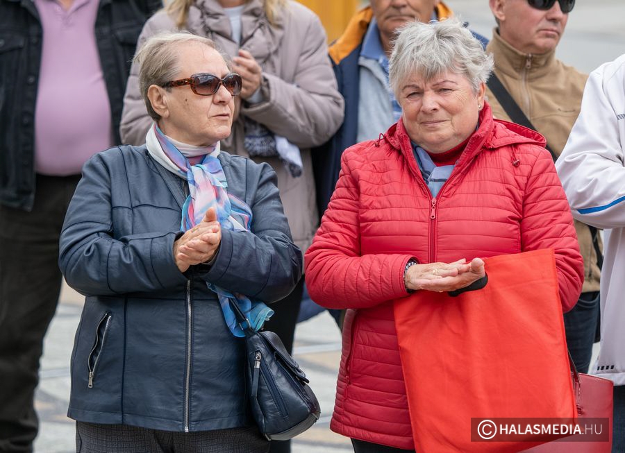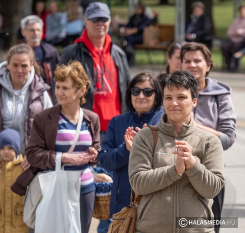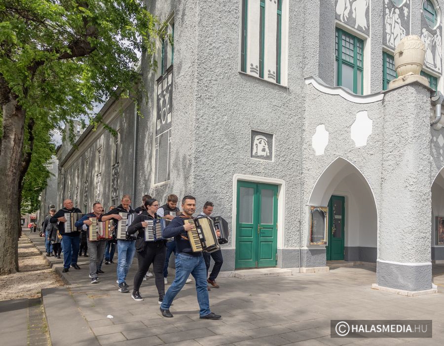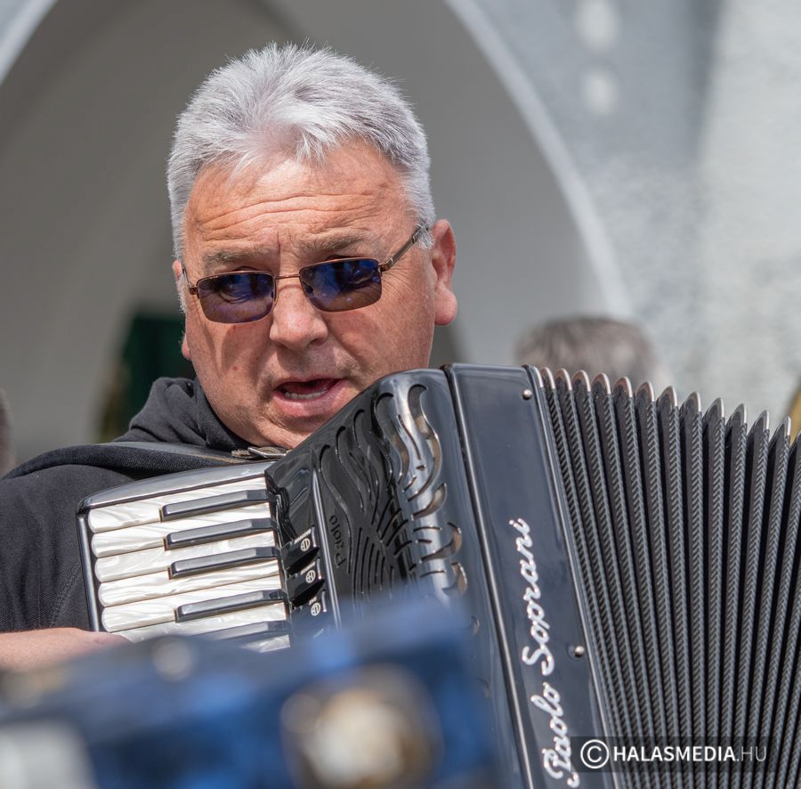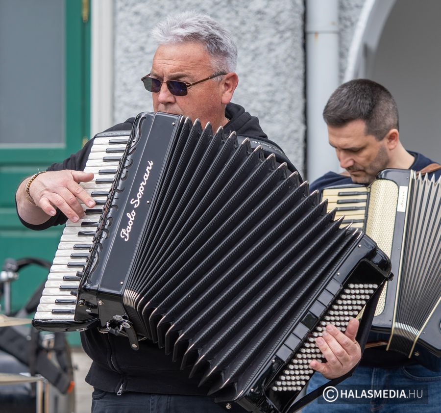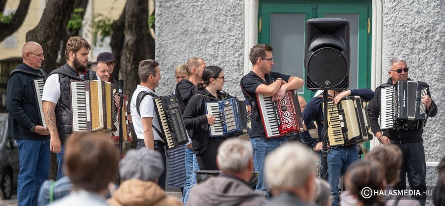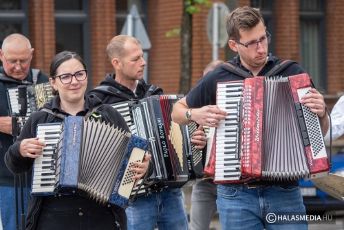 Halas főterére szombaton délelőtt 11 órakor masírozott be a tucatnyi zenészből álló harmonikás csapat Kardos Zsolt vezetésével. Őket a Halas Concert Band várta és jó 150 fős tömeg. Hatalmas tapsot kaptak az érkezéskor és persze azt követő vegyes koncerten is.
