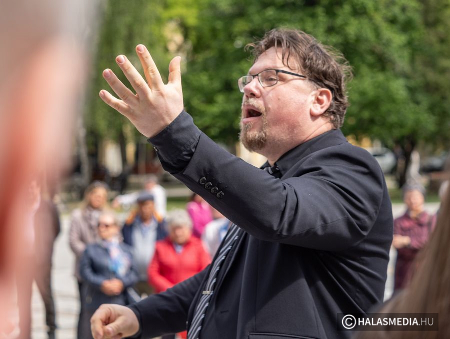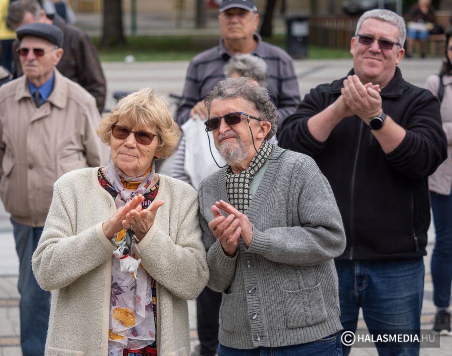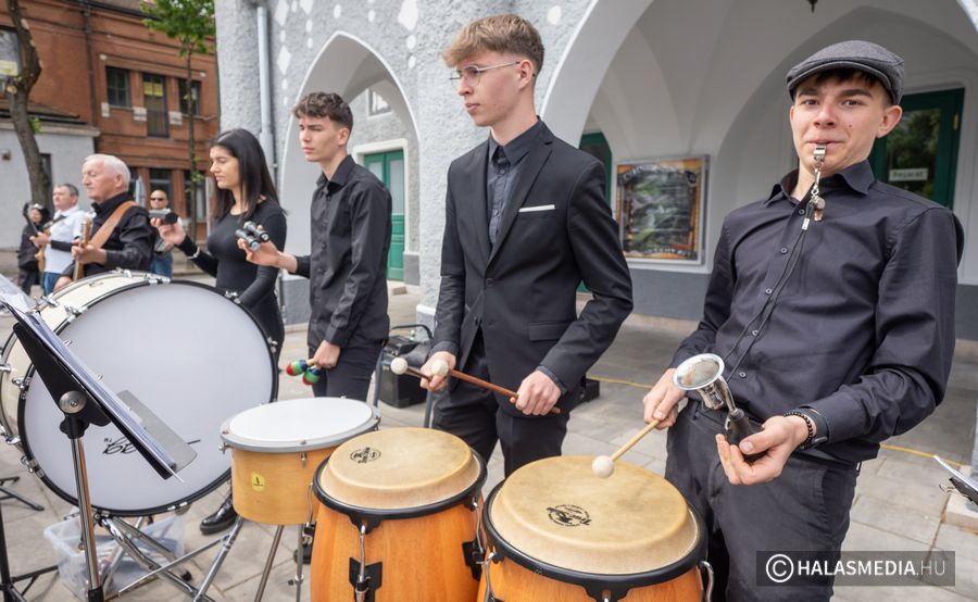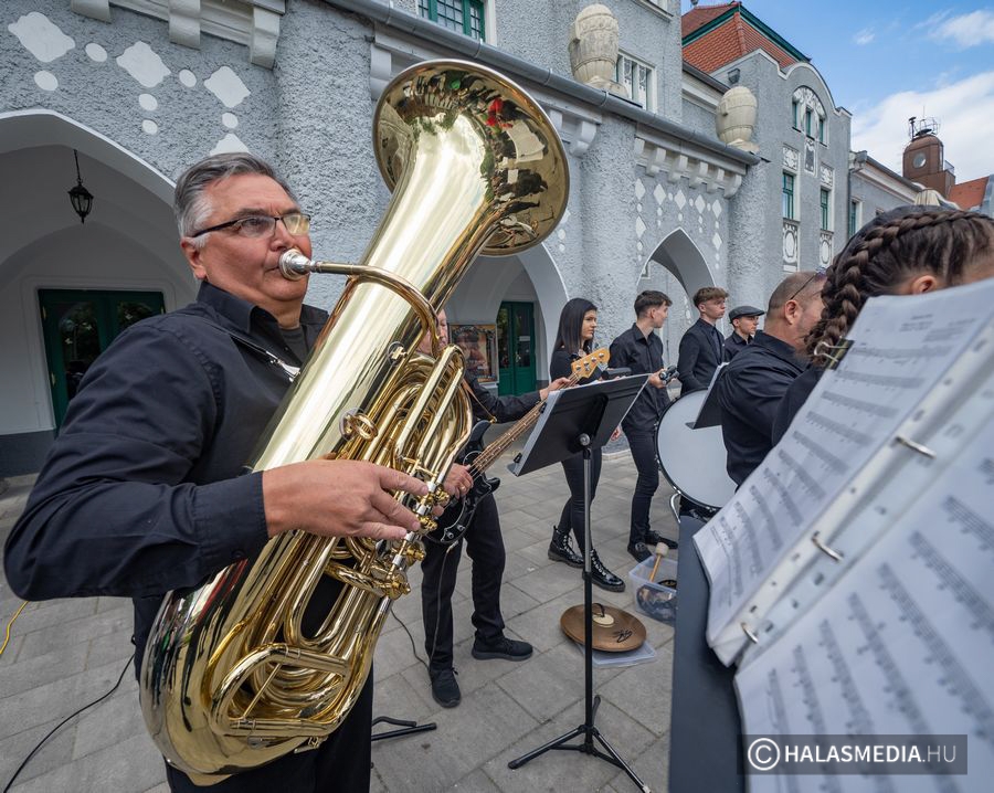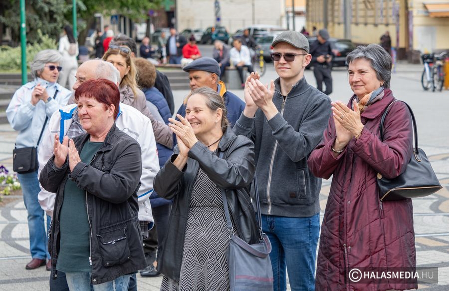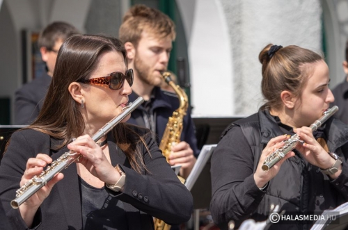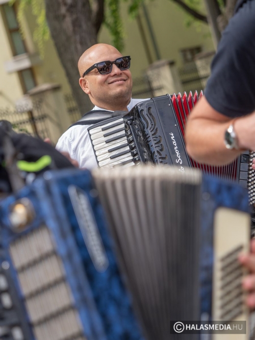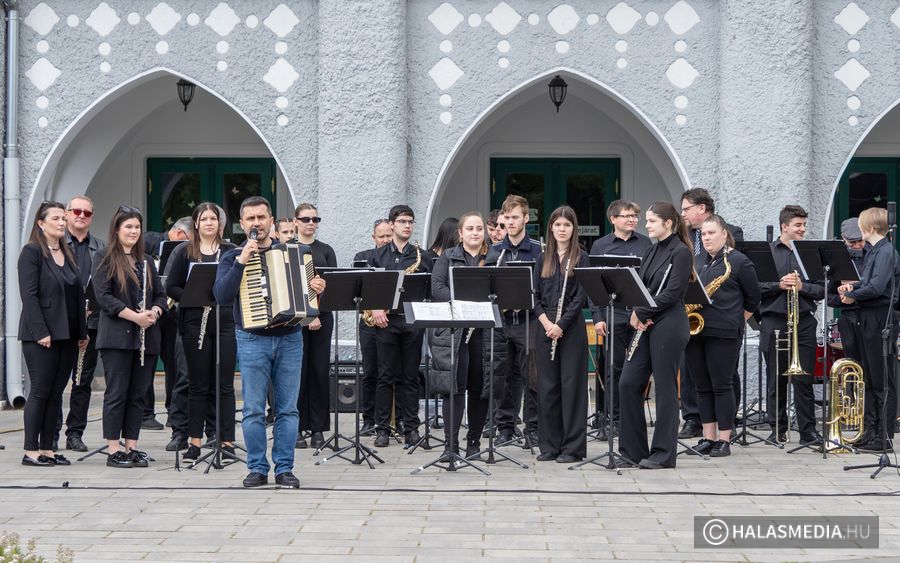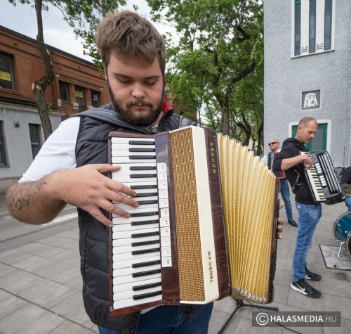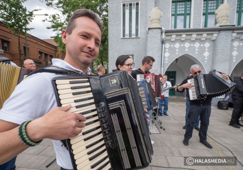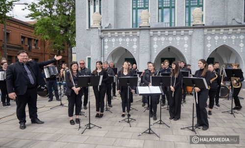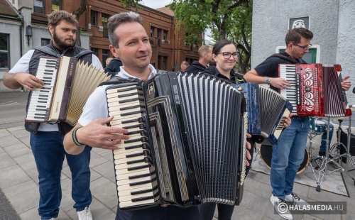 Kevés beszéd, sok zene, így lehet jellemezni a főtéri harmonikás és fúvós együttműködést. A Halas Concert Band-et Szente Alfonz vezényelte és ismert, népszerű, fülbemászó slágereket illesztettek a repertoárba. A műsorrendben felváltva hol a fúvósok, hol a harmonikások lepték meg a lelkes közönséget. A mintegy félórás köztéri zenélést alig engedte befejezni a közönség. Hatalmas vastapssal jutalmazták a nézők a zenészek előadásait.