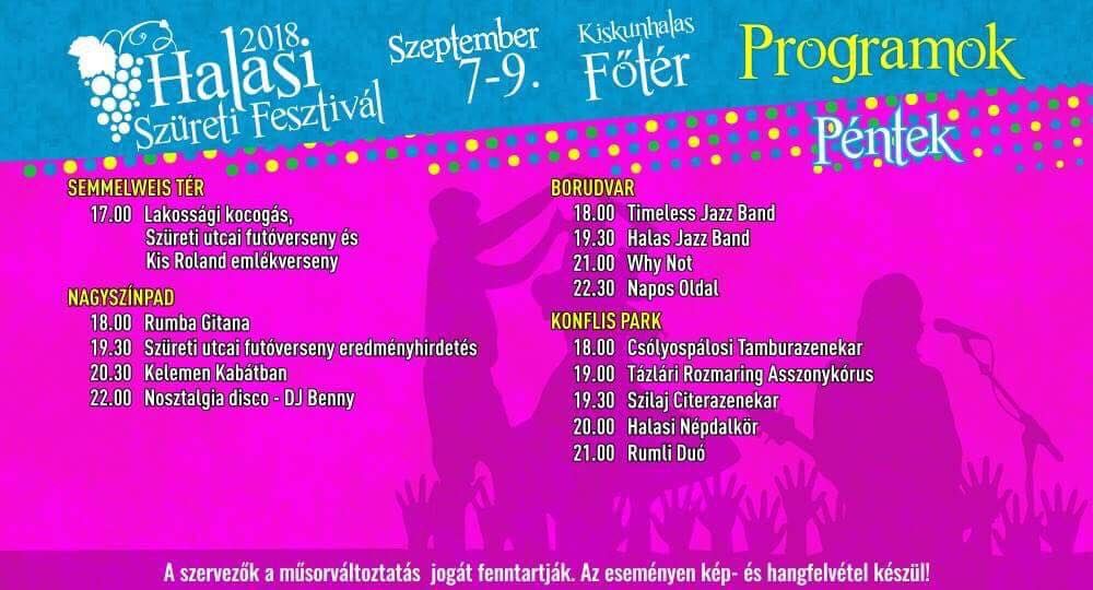 Két hét múlva kezdődnek a Halasi Szüreti Fesztivál rendezvényei. Péntektől vasárnapig változatos programokkal készülünk, könnyűzenei és népzenei koncertek mellett gasztronómiai élmények, gyermekrendezvények várnak mindenkit a halasi főtéren.