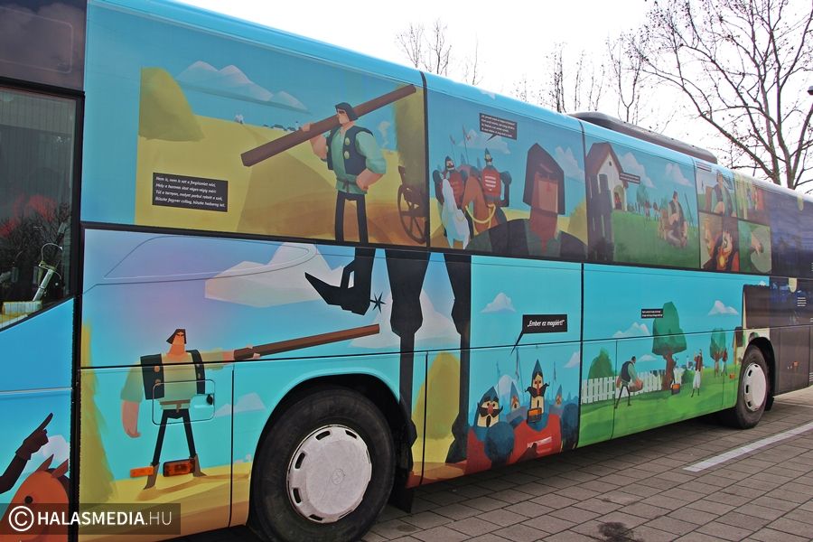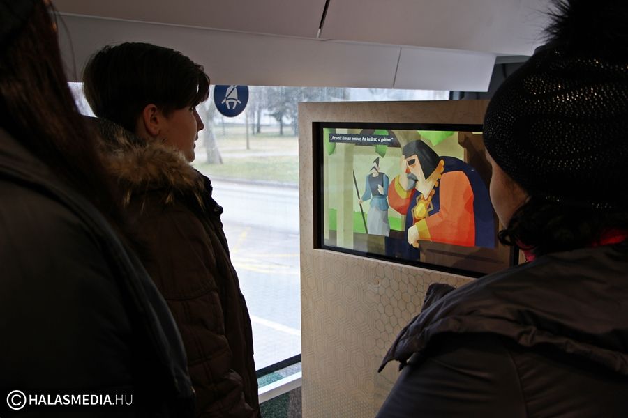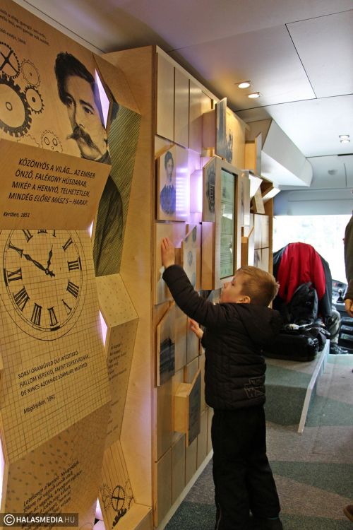 - Örülünk, hogy a Semmelweis téren a halasi embereknek is megmutathatjuk ezt a nem mindennapi tárlatot. Tapasztalatunk szerint az emberek jobban szeretik azokat a kiállításokat, amik helybe mennek, ezért igyekszünk a lehető legtöbb helyen megjelenni. Büszkén mondhatom, hogy nem csak a gyermekek, hanem a felnőttek is rácsodálkoznak jónéhány dologra a busz kínálatából. Irodalmi alapismeretekre, verstudásra, kreativitásra és egy kis fizikai erőre is szüksége van azoknak, akik sikerrel szeretnének teljesíteni minden általunk biztosított feladatot – árulta el Erdődy Kristóf tárlatvezető.