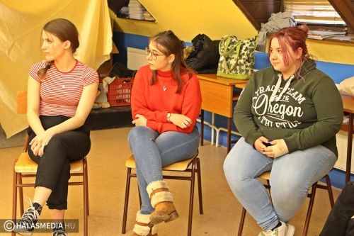 - Ez a programunk az Írj, olvass, játssz! címet viseli. Középiskolásoknak találtuk ki, célunk pedig az volt, hogy a gyerekekkel együtt találjunk rá arra, hogy a művészet (legyen az irodalom, képzőművészet vagy zene) mennyire fontos ahhoz, hogy jól éljünk. Fontos, hogy megtapasztalják ezt nemcsak, mint befogadó, hanem, mint alkotó is. Amikor ide készültünk, akkor nagyon izgultunk azon, hogy vajon a mai fiataloknak lesz-e elég nyitottságuk arra, amivel mi készültünk. De örömmel tapasztaltam, hogy bár már korban elég messze vagyunk a tizenévesektől, mégis meghatódva mondhatom, hogy csodálatos élményekkel gazdagodtunk a nap folyamán. Három csoporttal dolgoztunk együtt, minden diák nagyon nyitott volt felénk, bátran elmondták gondolataikat nekünk – tudtuk meg Tallér Edinától.