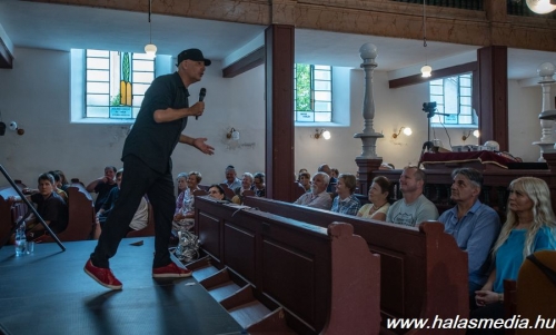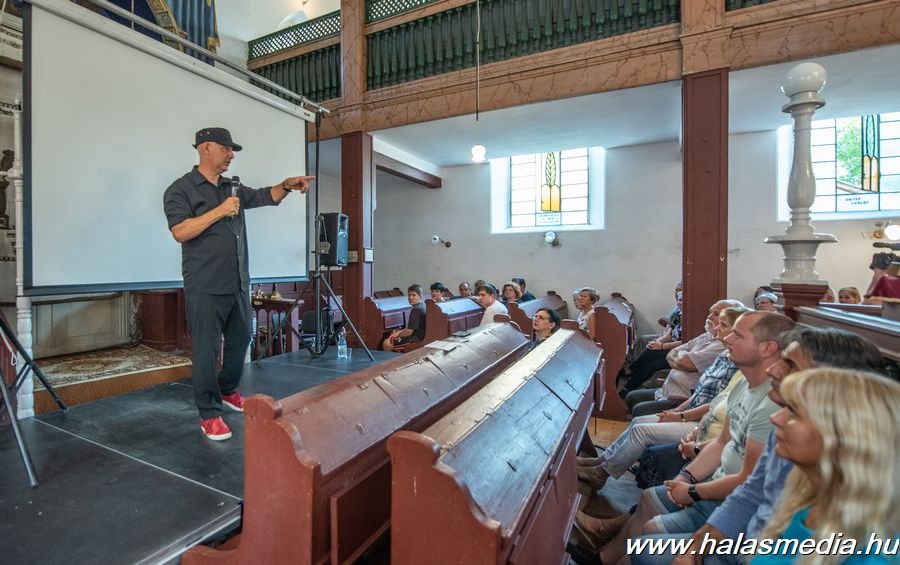 Utolsó állomásaként egy újabb elvonulása előtt tartott vasárnap este „Túl minden határon” címmel motivációs előadást, a délszláv háborúban ismerté vált tudósító, újságíró Vujity Tvrtko (címképen) a Kiskunhalasi Zsinagógában. A kétórás előadás több mint telt ház előtt történt és a világjáró zsurnaliszta, meg közönsége is gazdagabban, életigenlőbben távozott a helyi izraelita közösség székhelyéről.