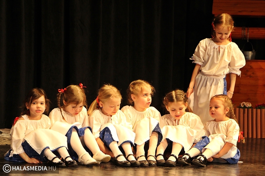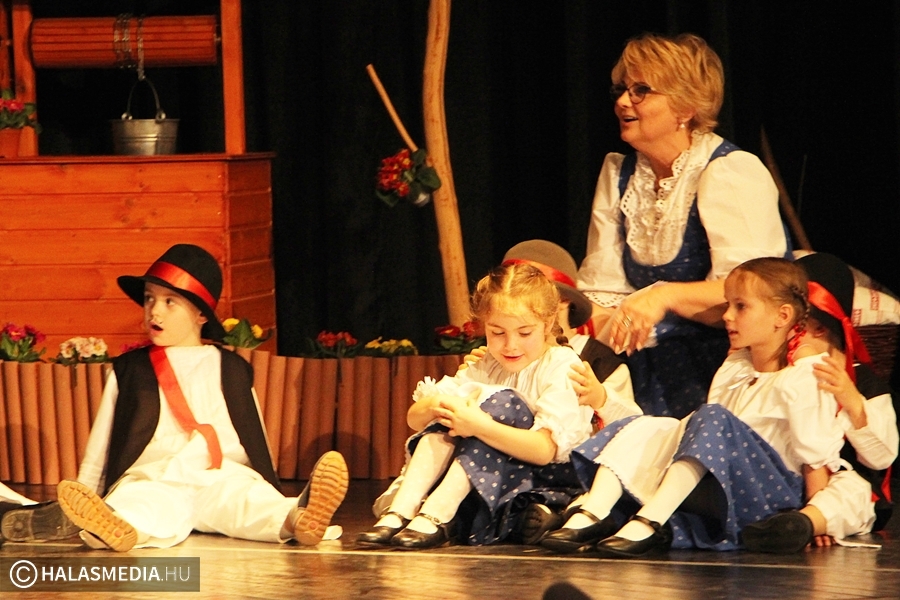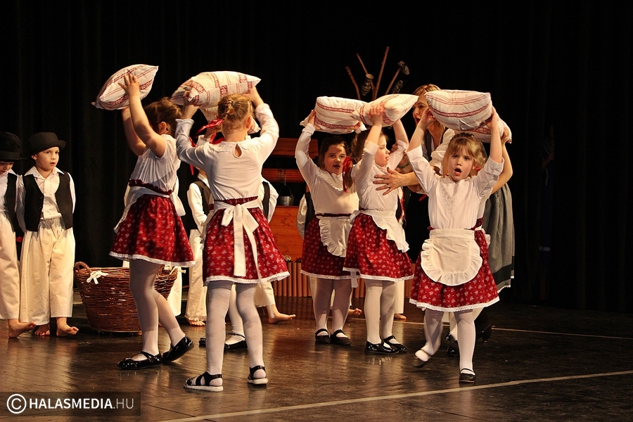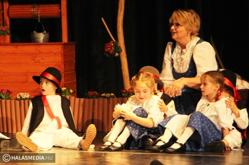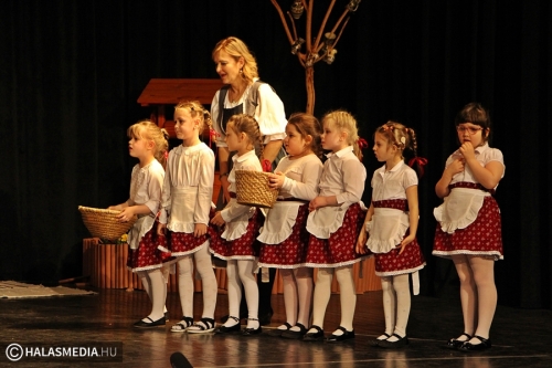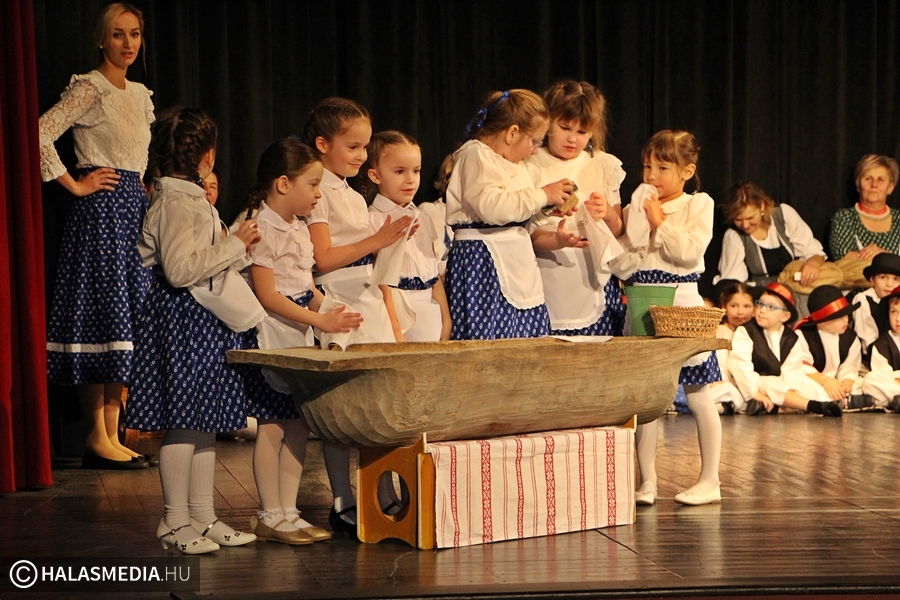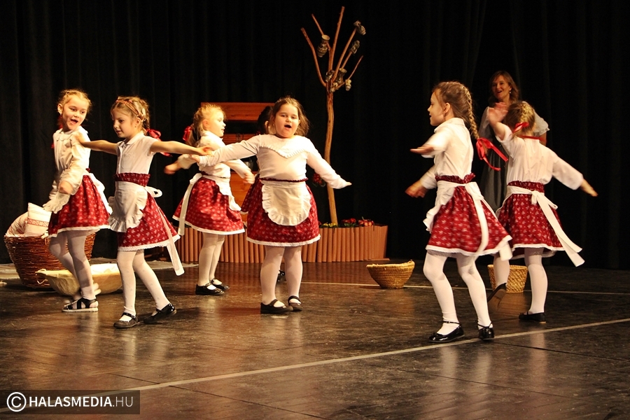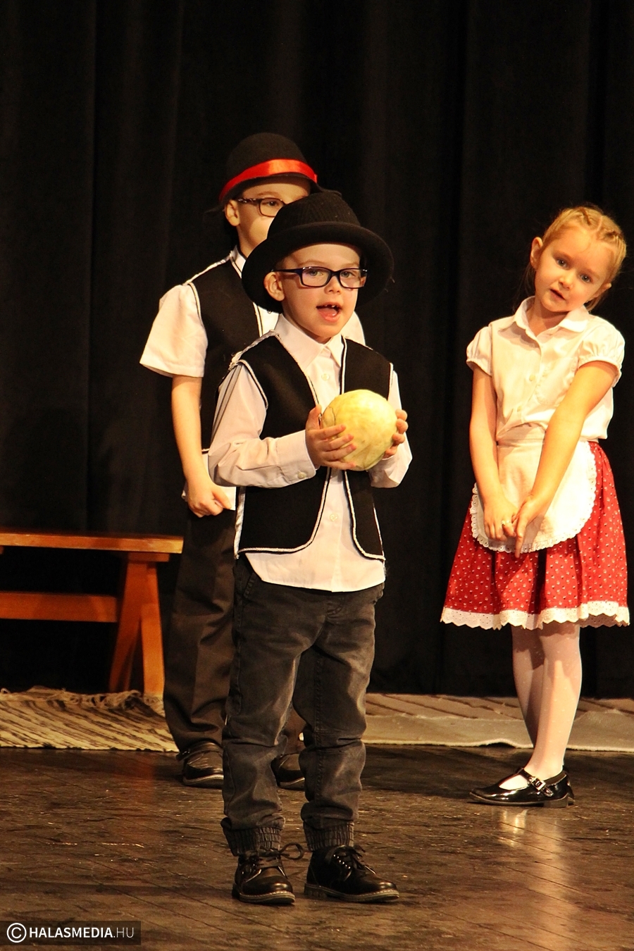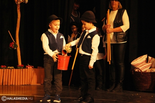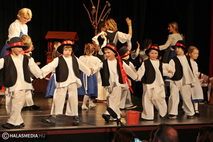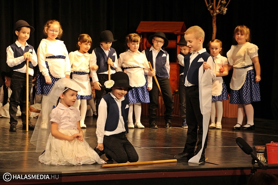 Nagy sikere volt annak a kis jelenetnek is, amiben az óvodások egy falusi lakodalmat elevenítettek fel. Az eladósorba került lánynak először a kérők közül ki kellett választania a legszimpatikusabbat, majd jöhetett az esküvő és a mulatság.