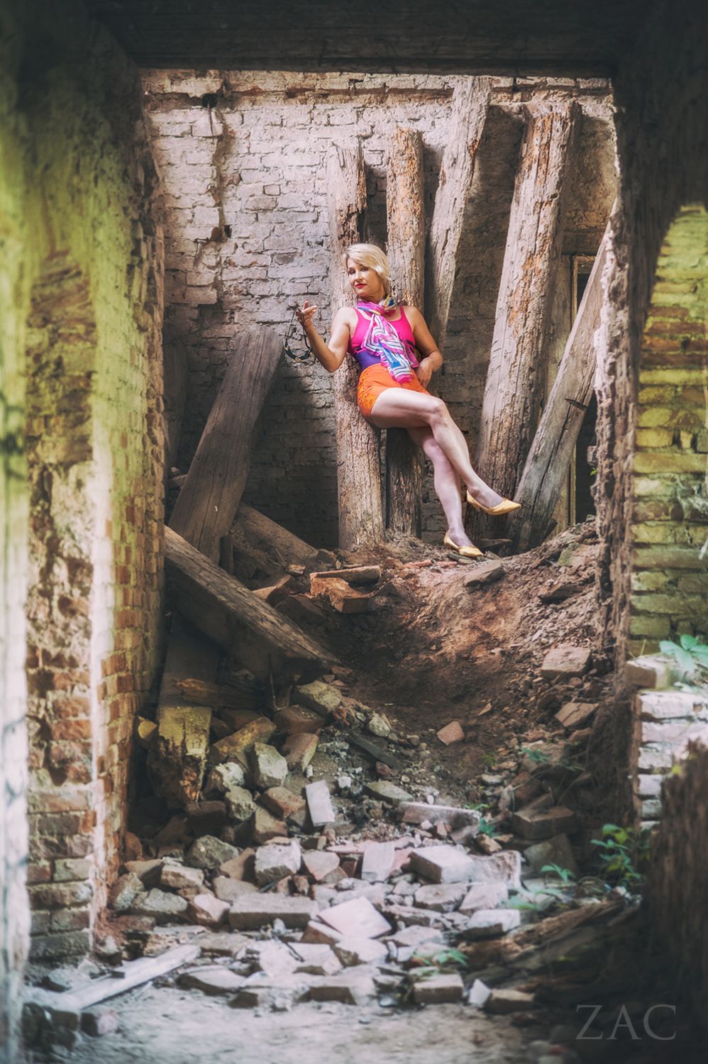 Claudia: - Nagy szenvedélyem a rom. Bármi, ami romos. És szinte bárhogyan romos. Imádom meglátni a pusztulásban a szomorúságot, vagy azt a szépséget, ami egykor lehetett benne. De mivel a fotózás gyógyíthatatlan szenvedély ugyancsak, így nem tudok elmenni ezek mellett anélkül, hogy ne próbálnám megmutatni másoknak. A romok egy képen önmagukban viszont csak romok maradnak. Így megpróbálok valami olyat beletenni, ami megmutatja azt is, hogy én mit látok bele. Vagy inkább én mit érzek bele. Ezért találtam ki azt, hogy Éduával ott lehetne egy fotósorozatot elkészíteni. Valami olyasmit, ami kontrasztjában jól érzékelteti azt, hogy mit tudok elképzelni ezeknek a romoknak a múltja mögé. És aki látta a tavalyi kiskunhalasi kiállítást, most jól érzékelheti az iszonyatos különbséget a romok drámája és a mostani képek között, ami inkább a letűnt szépséget akarja szimbolizálni.