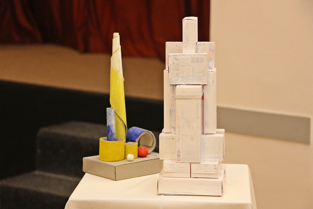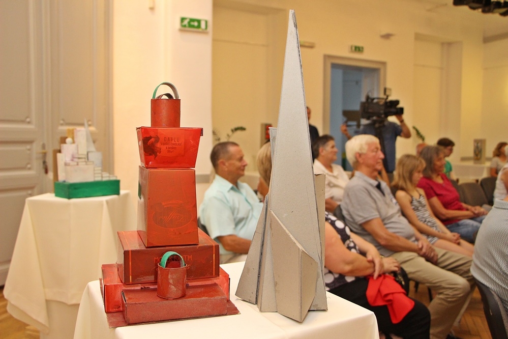 - Egyik délután már éppen túl voltam a teázáson, hallgattam a rádiót és kiürült az asztalon lévő gyufásdoboz. Elővettem egy másik doboz gyufát, közben pakolgattam a gyógyszeres dobozkáimat is. Ekkor tűnt fel, hogy milyen szépen néz ki, ahogy egyik dobozt ráhelyezem a másikra, a harmadikat mellé pakolom. Az egyszerű dobozokban is megláttam a szépséget. Sokáig ültem az asztalnál, rakosgattam a különféle formákat, s rájöttem, hogy ezekből én kiállítást szeretnék csinálni. Ha végignézik az alkotásokat, a legegyszerűbb formákat fedezhetik fel. Gömb, kocka, gúla, henger. De együtt mégis egy egészet alkotnak – fejtette ki Baráth József.