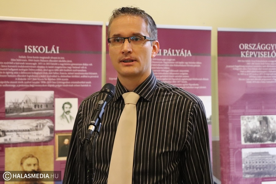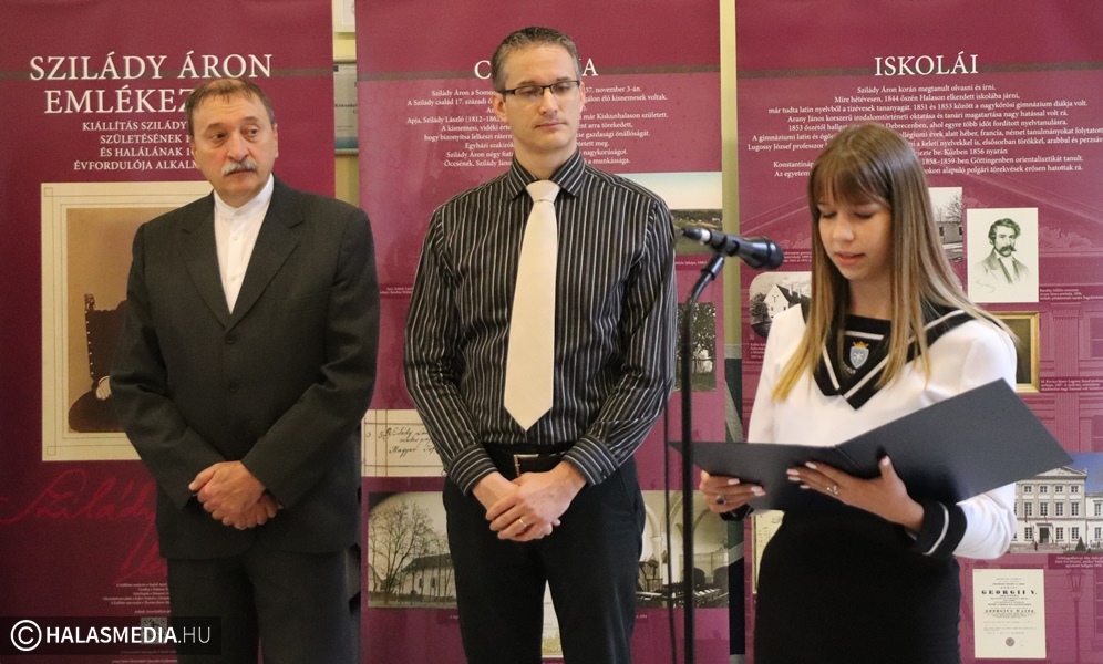 Szilády-évfordulókat ünneplünk ebben az esztendőben. Éppen 185 esztendővel ezelőtt született a jeles tudós és a református intézmény névadója. Halálának századik évfordulójára is emlékezünk. Ugyanakkor 130 esztendeje épült meg a gimnázium patinás főépülete. A jubileumok kapcsán egy kiállítás nyílt az iskola aulájábán Szilády Áron emlékezete címmel. Ennek megnyitása hétfőn délelőtt volt. A diákokat Szabó Ferenc igazgató köszöntötte, majd Szakál Aurél, a Thorma János Múzeum igazgatója ismertette Szilády Áron életének legfontosabb állomásait. Kitért arra is, hogy egy könyv jelent meg, amely fényképeken idézi meg a tudós munkásságát.