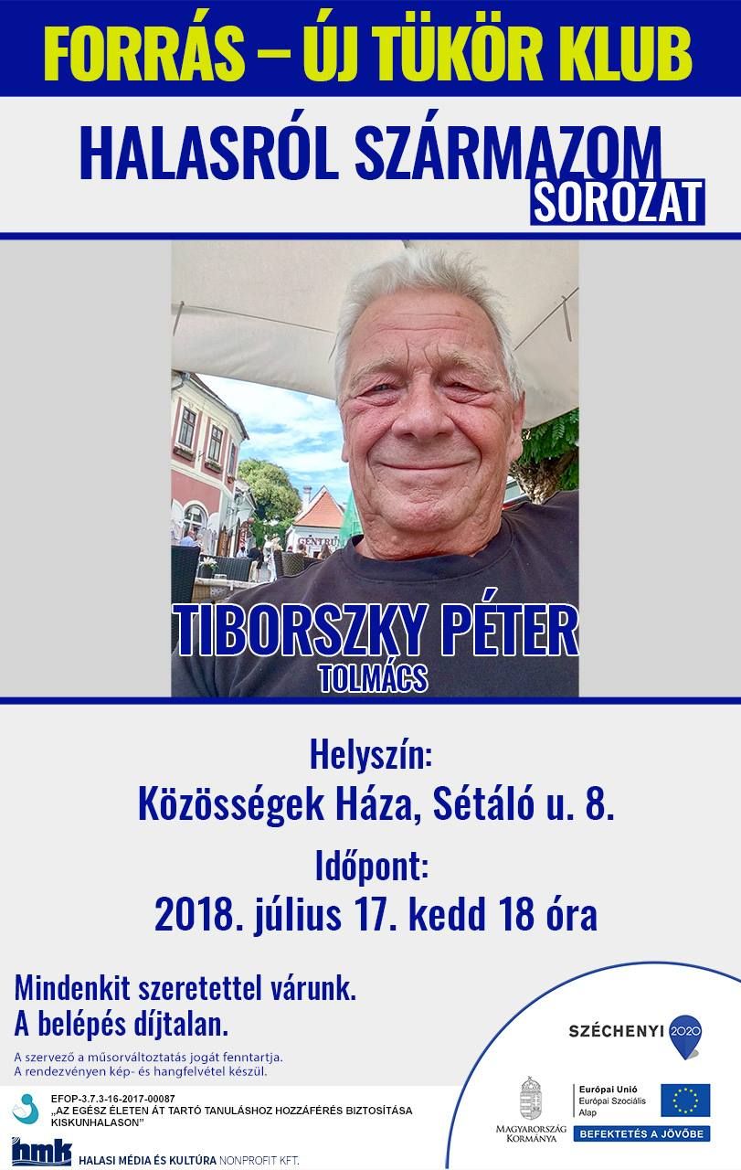 Július 17-én, kedden Tiborszkiy Péter lesz a vendég, a Halasról származom című sorozatban. Őt zenészként és angol fordítóként ismerhetik Halason. A Bikini együttes szövegeinek egy részét is ő írta.