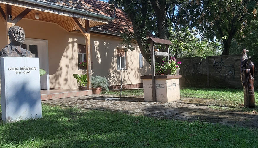 Gion Nándor 1941-ben született Szenttamáson, 2002-ben hunyt el Szegeden. Prózaíró, szerkesztő. Olyan ismert írásai volta, mint a Kétéltűek a barlangban, Testvérem, Joáb, Postarablók, Olyan, mintha nyár volna, Latrotnak is játszott, A kárókatonák még nem jöttek vissza, Sortűz egy fekete bivalyért stb. Számtalan díjat kapott még életében és posztumusz is, mint például: Déry Tibor-díj (1987), József Attila-díj (1988), Márai Sándor-díj (1997), Magyar Köztársaság Babérkoszorúja (2000), Kortárs-díj (2001), Szenttamás község Értünk-díja (2010).