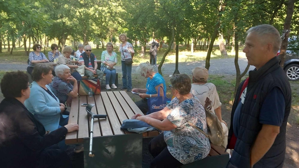„Jó hangulatban érkeztünk a Csipkeházba, ahol volt szerencsénk megtekinteni egy országos csipkekiállítást is, valamint láthattunk, hogyan készül a világhírű halasi csipke, amely ma már hungaricum. Egyik vendégünknek annyira megtetszett a halasi csipke, hogy vásárolt egy gyönyörű albumot is, melyet mindannyiunkkal aláíratott. Közös fotózkodás után nem maradhatott el Markovits Mária csipkevarró és Dékáni Árpád rajztanár szobrának megtekintése sem. Sőt még a közelben lévő Búsuló kuruc szobrot is láthatták az érdeklődők. Az időjárás is kegyes volt hozzánk. Kisütött a nap.”