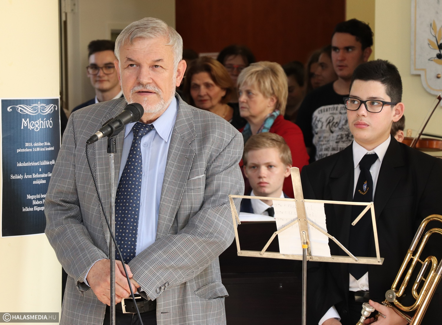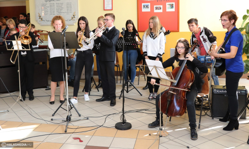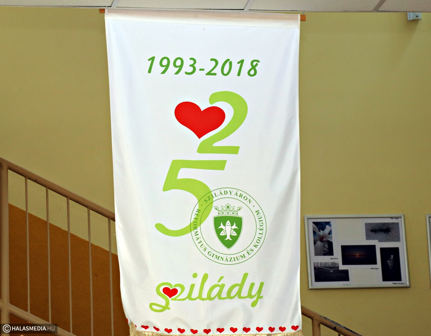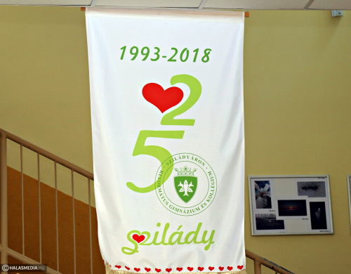 Szilády 3.1. A gimnázium diákjai nevezik ezt a mostani korszakot. Bödecs Pál főigazgató emlékeztetett erre a kiállítás megnyitóján elmondott köszöntőjében, az első időszak az alapítástól az államosításig, a második 1948-tól az egyházi tulajdonba kerülésig tartott, a harmadik pedig 1993-ban kezdődött. Zenés staféta is volt ezen a délutánon az intézményben, tanárok, diákok muzsikáltak együtt. Bemutatták a 25 éves évfordulóra készült zászlót, amelyet Rácz-Fodor Katalin tervezett.