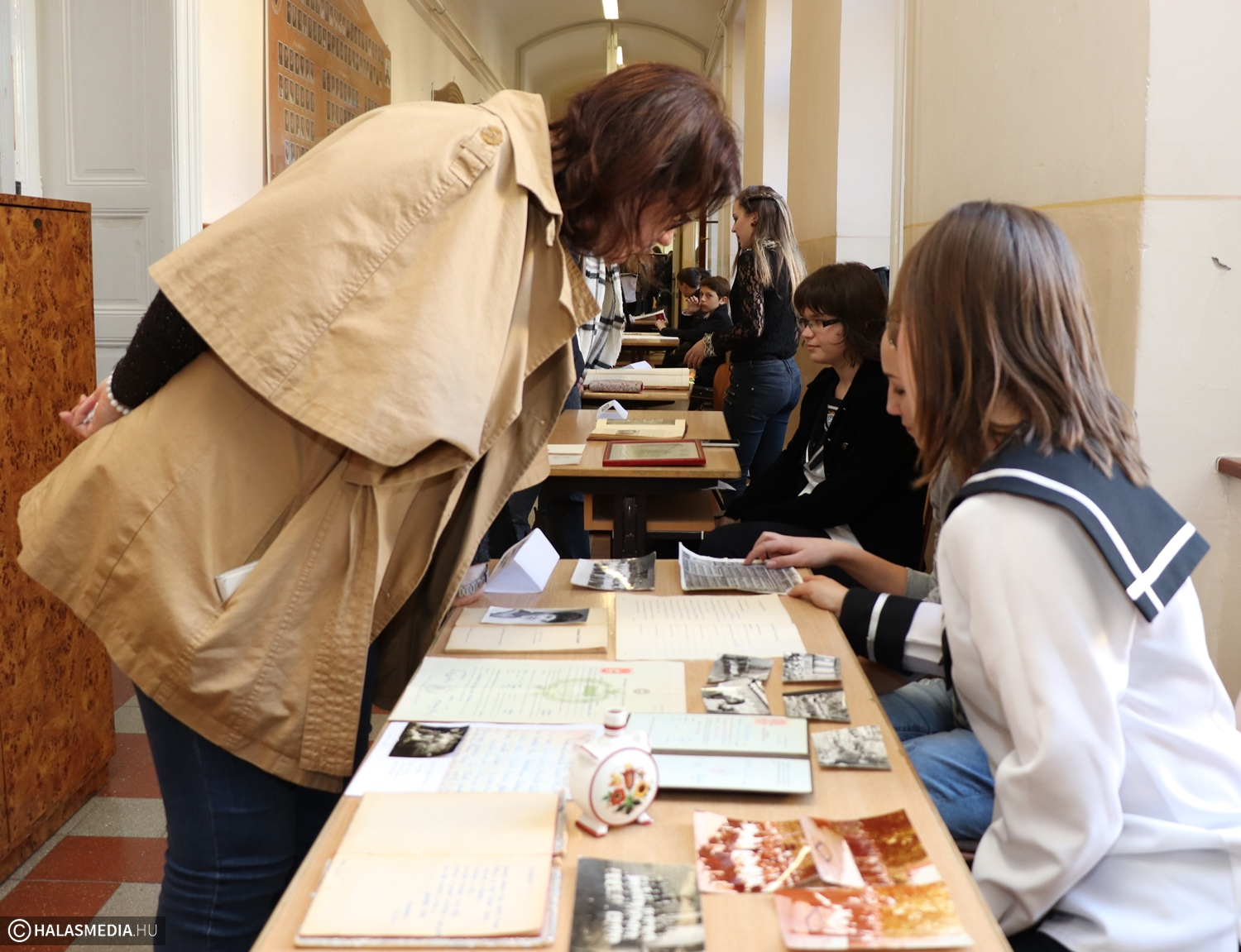Kiállítás a patinás Alma Mater folyosóján. Nem éppen hétköznapi és a tárlatoktól megszokott elrendezés volt ez, de aki végigsétált az aulától egészen a tanári szobákig több mint egy évszázadot ment az időben. Olyan tárgyakat, relikviákat láthattak az érdeklődők, amelyek jellemzőek voltak a Szilády Áron Gimnázium egy-egy korszakára. Ráadásul egy-egy asztalnál olyan diákok ültek, akik kötődtek a tárgyakhoz, tudtak azokról mesélni. Édesanyák, édesapák, nagyszülők, dédszülők féltve őrzött jelvényei, ballagós tarisznyái, jelvényei, bizonyítványai, füzetei kerültek elő és láthatta őket a szélesebb nyivlánosság is.