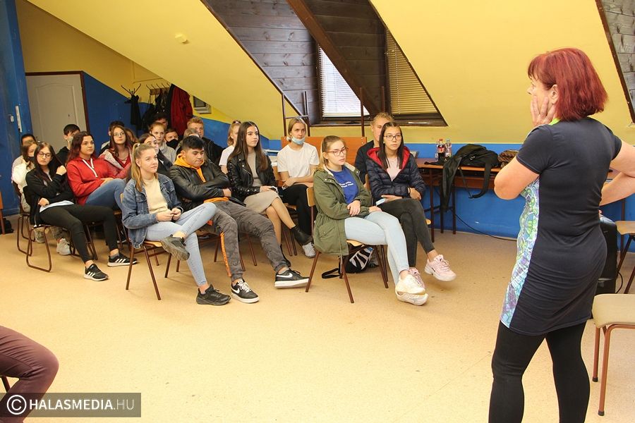 - Ezúttal egy irodalmi művet dolgoztunk fel egészen egyedi módon. Karinthy Frigyes Az emberke tragédiája című paródiáját választottuk, amiről köztudott, hogy nem csak Madách Imre Az ember tragédiájának paródiája, hanem egy az egyben egy stílusparódia is. Mivel rendhagyó irodalomórákat tartunk a mai napon, a hozzánk betérő osztályok nem csak egy darabot láthatnak, hanem tudásukat is fejleszthetik. Ennek érdekében én tartok egy interaktív előadást. Ennek részeként elmondom, hogy az eredeti mű hogyan keletkezett, milyen gondolatok foglalkoztatták Madách Imrét, mik a dráma fő kérdései, de szót ejtek arról is, hogyan utazunk végig képzeletben az emberiség történetén, belevéve azokat a fontos történelmi eseményeket, amik megjelennek az egyes jelenetekben. Ezt követően a nézőkkel és a színészekkel közösen próbáljuk megtalálni azt az eszmeiséget, ami Az emberke tragédiájában bújik meg - mondta Czagányné Pásztor Anikó.