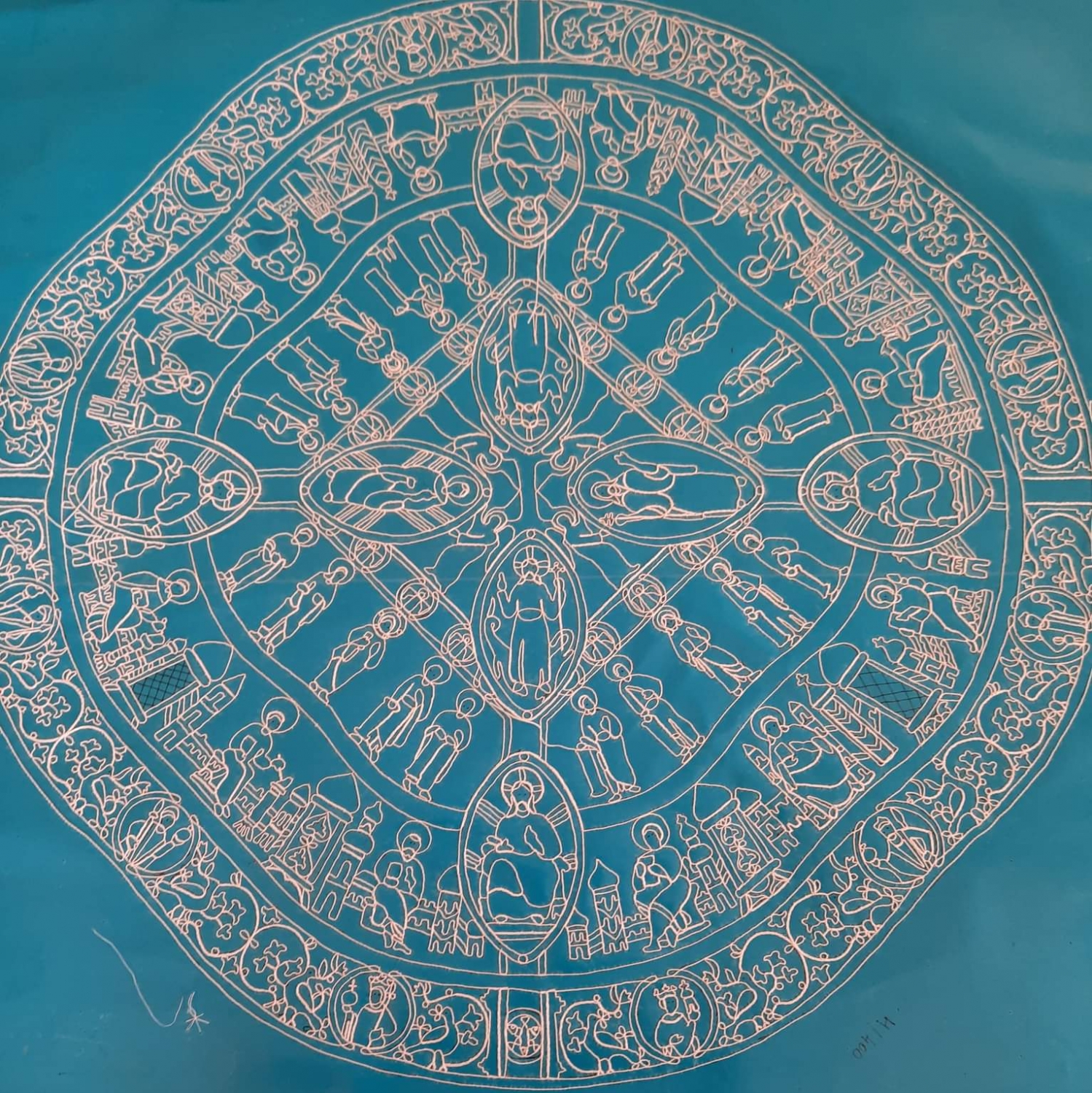 A csipkét Kertes-Takács Anett kontúrozta, és Kardos Zsuzsanna varrja. Ha elkészült vele, újból felveszik a kapcsolatot a megrendelővel, és egyeztetnek az átadásáról. Az eredeti alkotást dokumentum alapján 1996. szeptember 6-án vette át II. János Pál pápa. - Tavaly májusban nagy elánnal kezdtem varrni a Koronázási palástot, de a koronavírus-járvány és csipkés rendezvények szervezése okán szünetekkel tudtam folytatni. Közel 30-féle öltéssel dolgoztam. A kivitelezése 2000-nél is több órát igényel. A napokban végzek a munkálatokkal – tájékoztatott Kardos Zsuzsanna művészeti vezető.