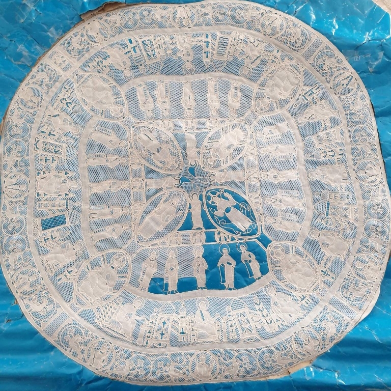 Második magyarországi látogatása alkalmából II. János Pál pápa Koronázási palást csipkét kapott a magyar állam ajándékaként. Ez az alkotás rendkívül részletgazdag. Az eredeti Koronázási palást minden szimbolikus figuráját ábrázolja. Megrendelésre újabb példány készül belőle.