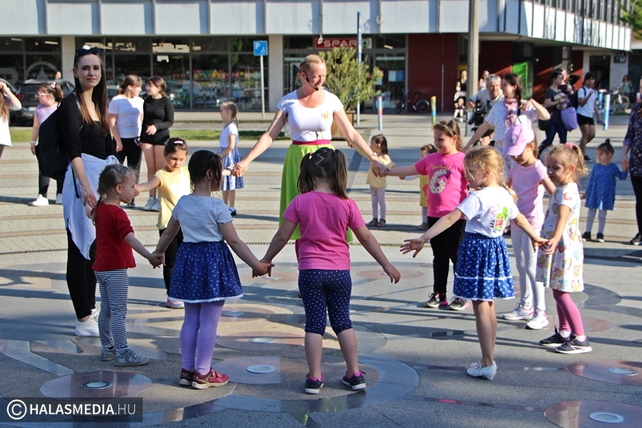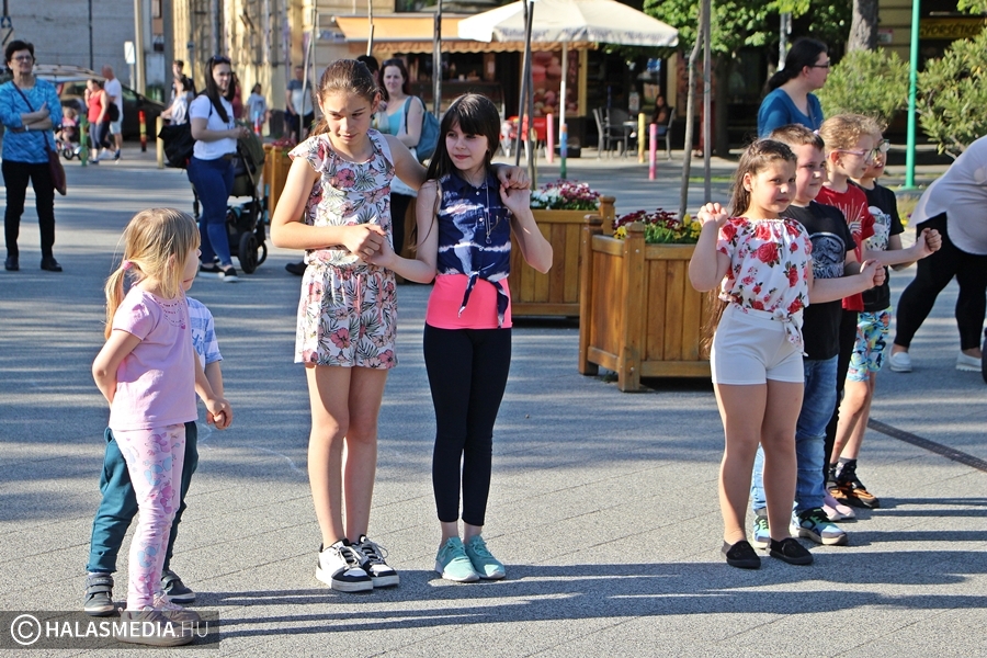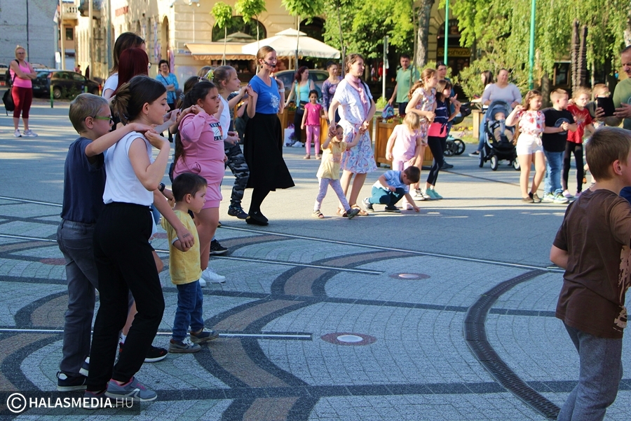 Gyermekek és felnőttek együtt ropták a tánc világnapján, Kiskunhalas főterén. A Györgyiné Szekeres Csilla és Juhász Eszter által szervezett rendezvényen egy zenekar húzta a talpalávalót, a résztvevők legnagyobb örömére.