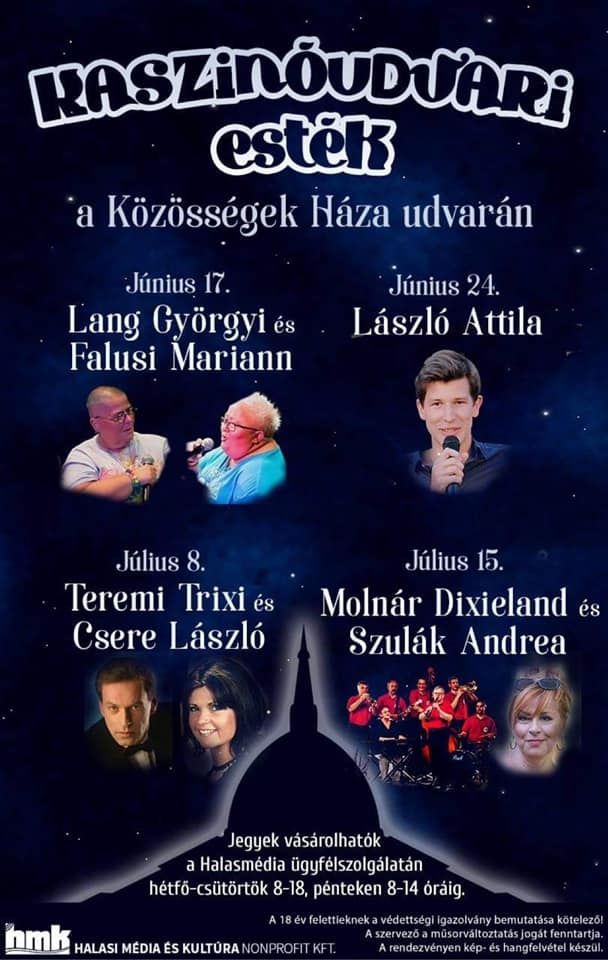 A Kaszinóudvari esték sorozat az elkövetkező hetekben is folytatódik. Június 24-én, csütörtökön László Attila lesz a vendég, akinek nevét a Csillag születik tehetségkutató műsor 3. évadában ismerhette meg az ország.