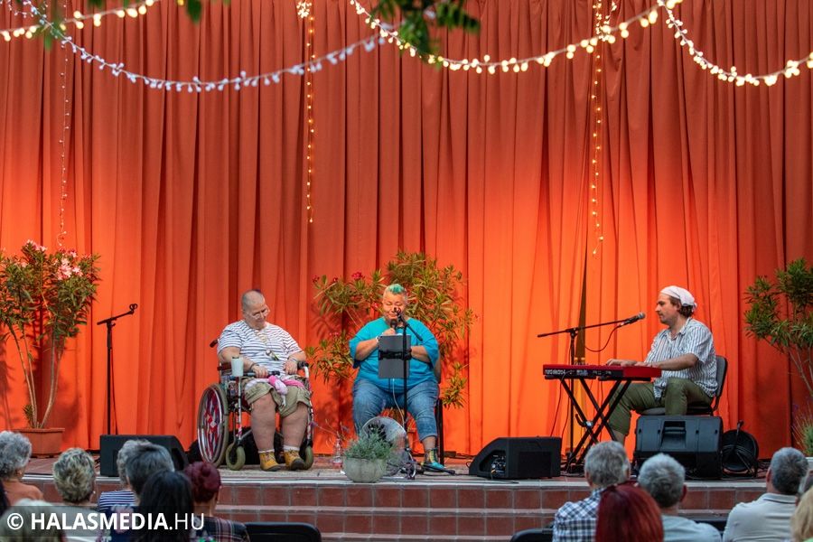 Csütörtökön este második állomásához érkezett a Halasi Média és Kultúra Kft. által útjára indított Kaszinóudvari esték sorozat. A múlt heti koncerttel ellentétben most az időjárás is kegyeibe fogadta a rendezvényt, így egy kellemes hangulatú, szabadtéri kupléestet láthatott és hallhatott a halasi közönség az est két sztárvendége, Falusi Mariann és Lang Györgyi jóvoltából.