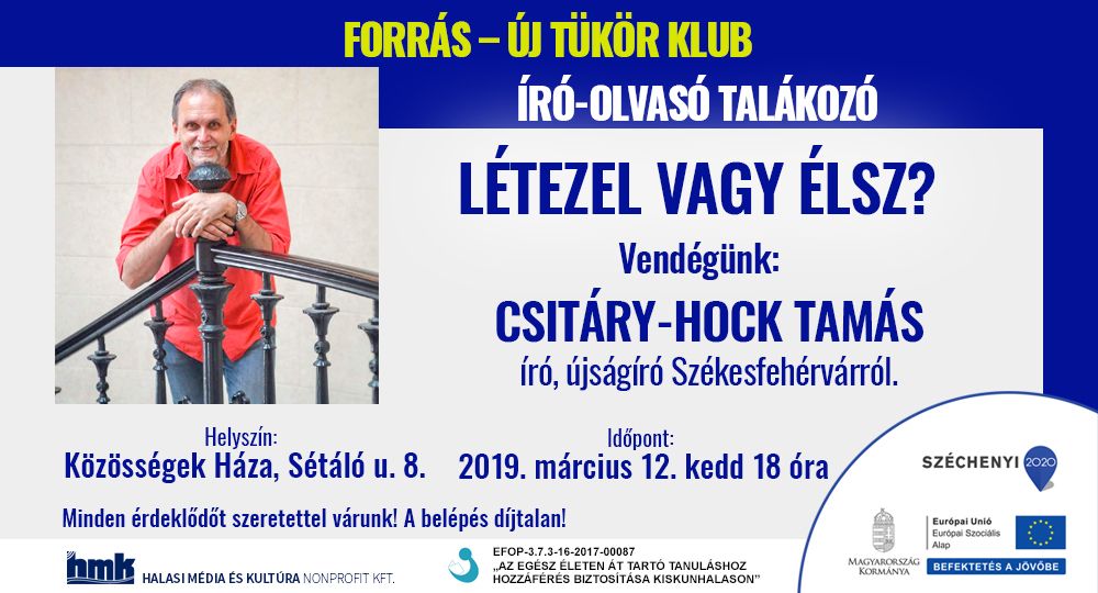 Kedden este folytatódik a Forrás- Új Tükör Klub előadássorozata a Közösségek Házában. A vendég ezúttal Csitáry-Hock Tamás író, újságíró lesz, akivel Király Gábor beszélget majd.