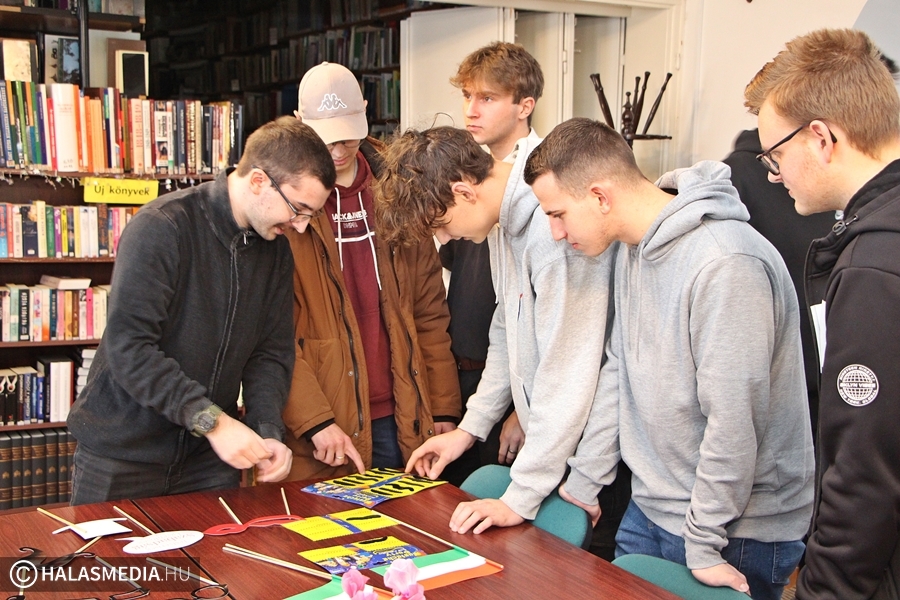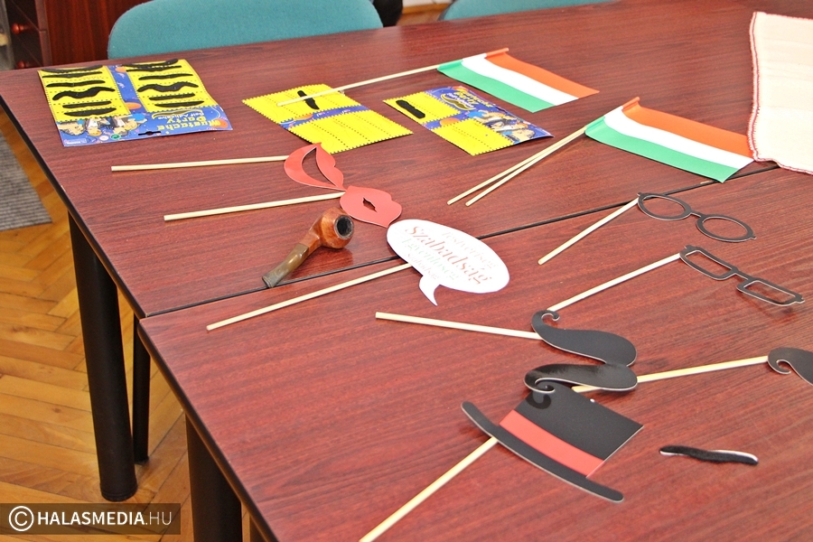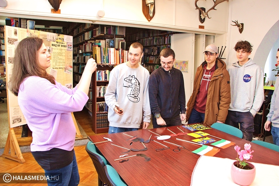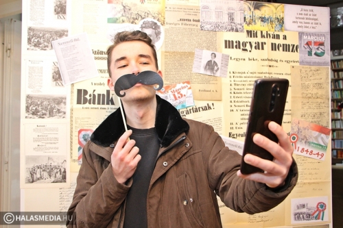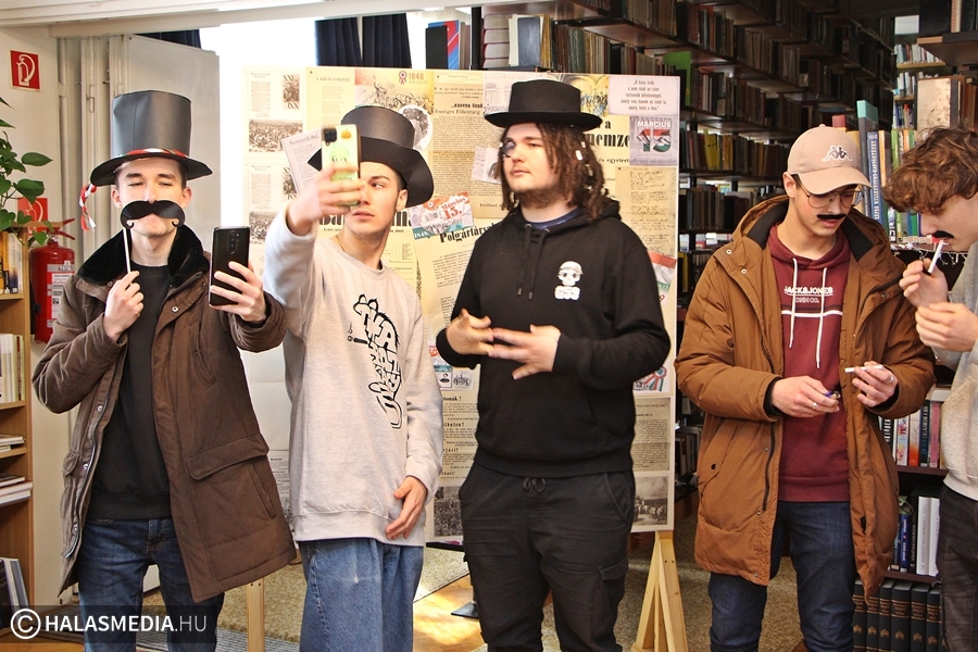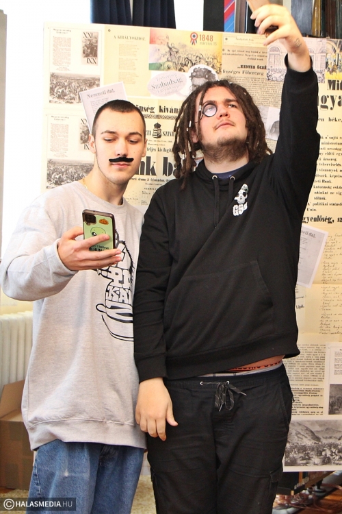 - A hagyományos iskola ünnepség mellett szerettem volna valami olyan más jellegű dolgot is létrehozni, ami egy kicsit „Petőfis”, valamint színesíti a diákjaink mindennapjait. Most a bicentenárium kapcsán mindenhonnan „dőlnek ránk” a jobbnál jobb rendezvények, programok, szerettünk volna mi is csatlakozni ehhez az egész folyamathoz, így egy fotófalat állítottunk ki a könyvtárban. Petőfi életéről, munkásságáról és erről a történelmi korszakról játszva tanulhatnak a fiatalok, miközben a különféle kiegészítőkkel szelfiznek – árulta el Laczkó Krisztina iskolakönyvtáros.